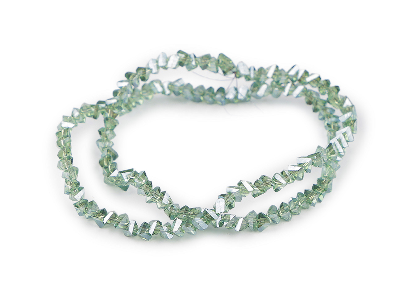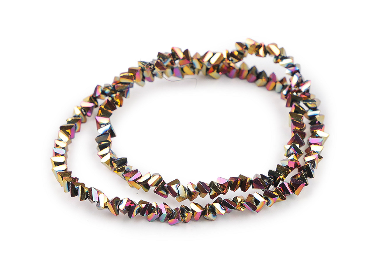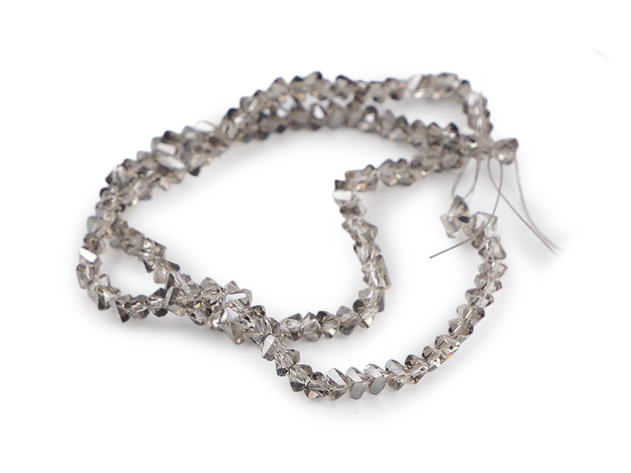 Skleněné broušené korálky triangl na drátku se vyznačují precizním broušením, které jim dodává jedinečný lesk, třpyt a atraktivní trojúhelníkový tvar. Jsou ideální pro detailní práci při výrobě šperků, jako je ketlování, šité šperky, drátování nebo tvorba paměťových náramků. Skvěle se hodí i do různých hobby projektů jako elegantní ozdoba.