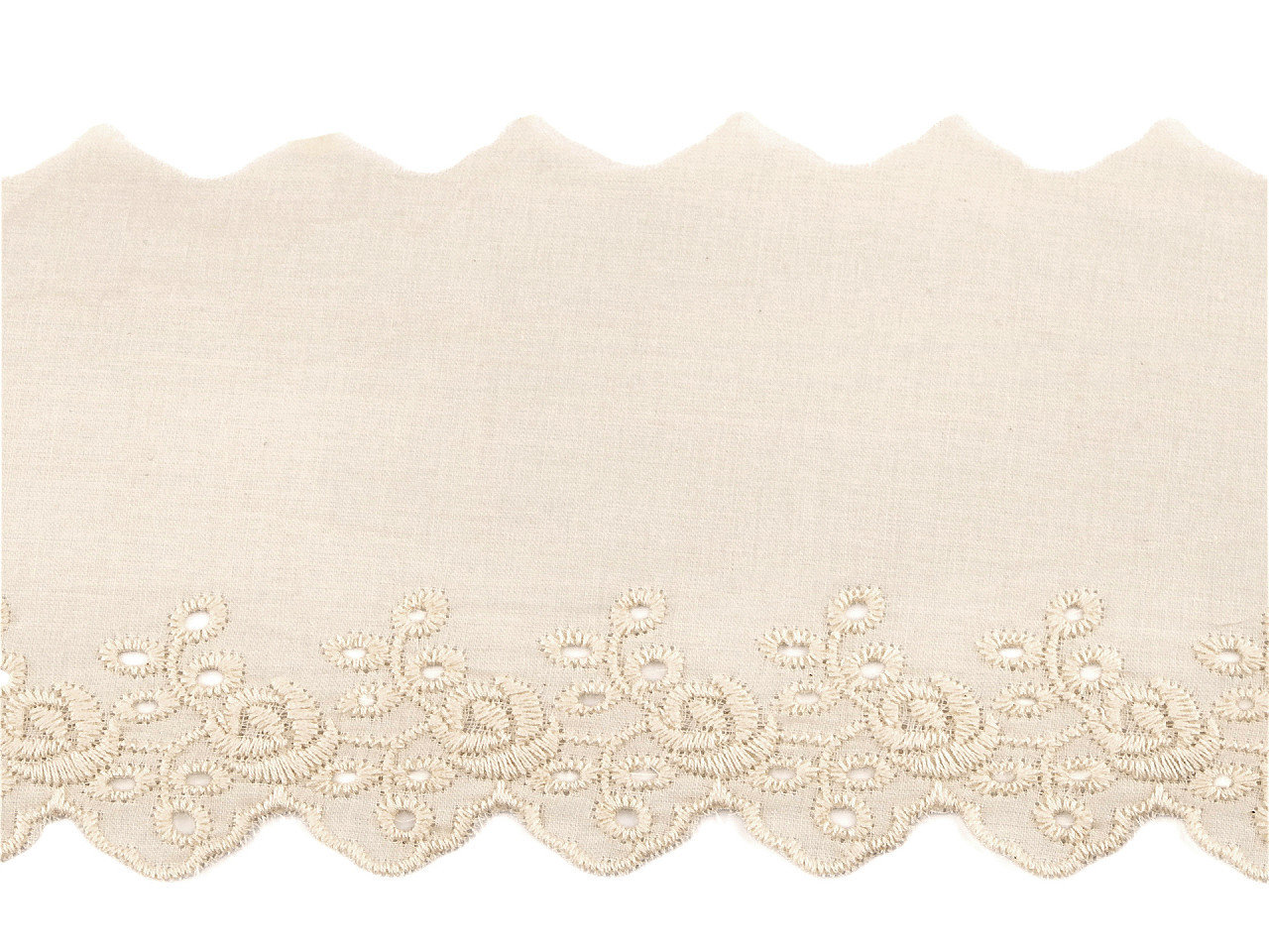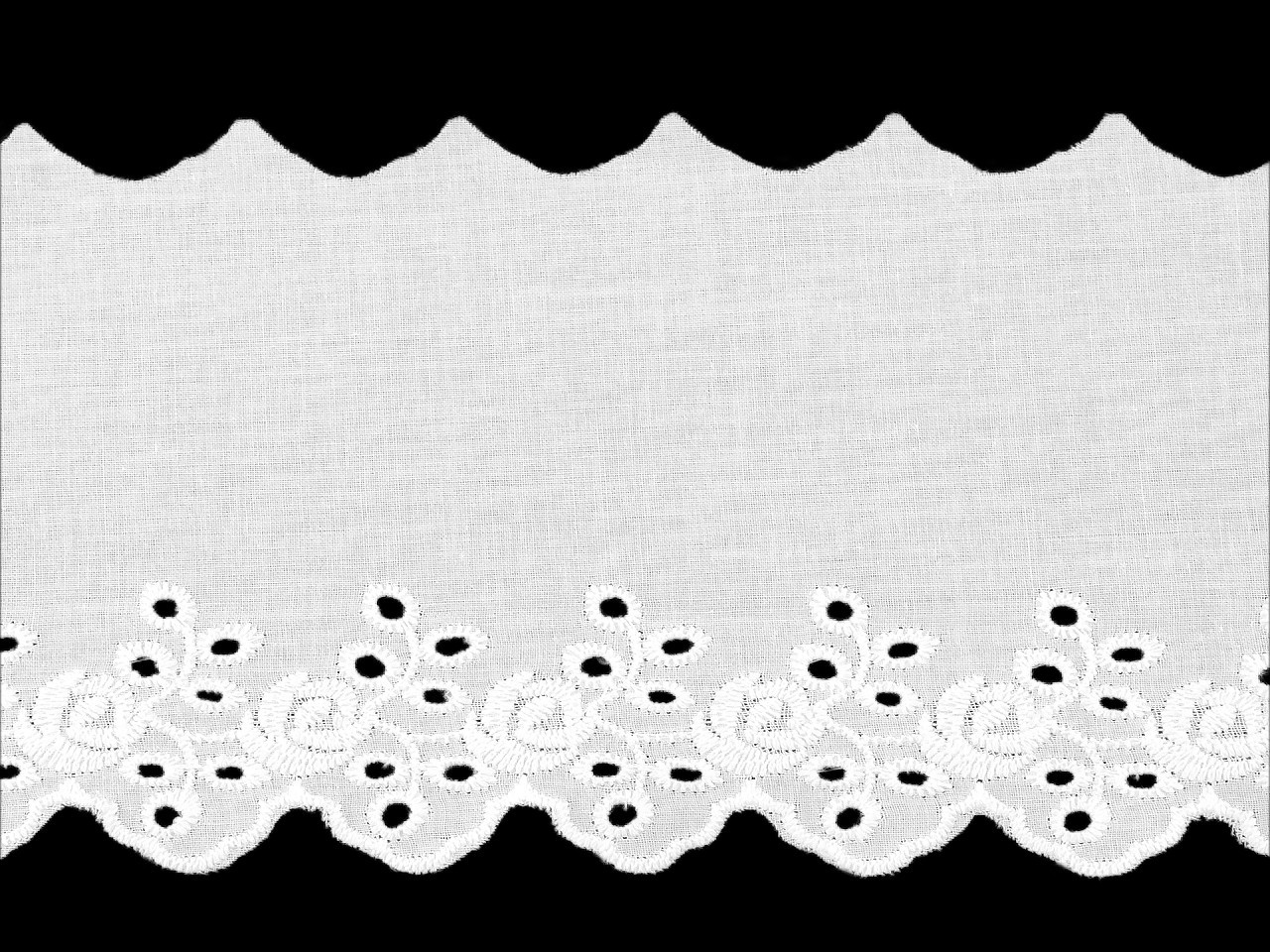 Bavlněná madeira s dírkovanou výšivkou je ideální volbou pro kreativní dekoraci domácnosti i oděvů. Výborně se hodí na ozdobení ubrusů, závěsů, dekoračních polštářů nebo ložního prádla. Můžete ji použít také na oděvy – vytvoříte tak originální a atraktivní detaily na lemech rukávů, sukních nebo výstřizích. Madeira je vyrobena z kvalitní bavlny, je příjemná na dotek a snadno se udržuje. Šíře nevyšité části se může mírně lišit (±10%), což dodává každému kusu jedinečný charakter. Výběrem této madeiry získáte univerzální a vkusný materiál pro vaše tvořivé projekty.