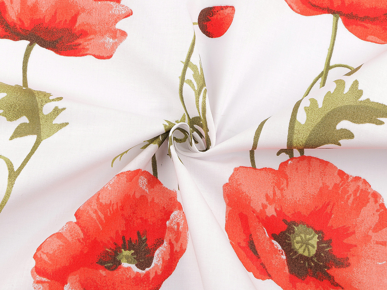 Oživte svůj domov či šatník bavlněnou látkou s výrazným vzorem vlčího máku. Tato kvalitní plátna jsou ideální na šití polštářů, povlečení, závěsů, ubrusů, tašek nebo pytlíků. Výrazný vzor dodává látce svěží a romantický vzhled. Bavlněná látka je příjemná na dotek, dobře se s ní pracuje a je vhodná pro začátečníky i pokročilé.