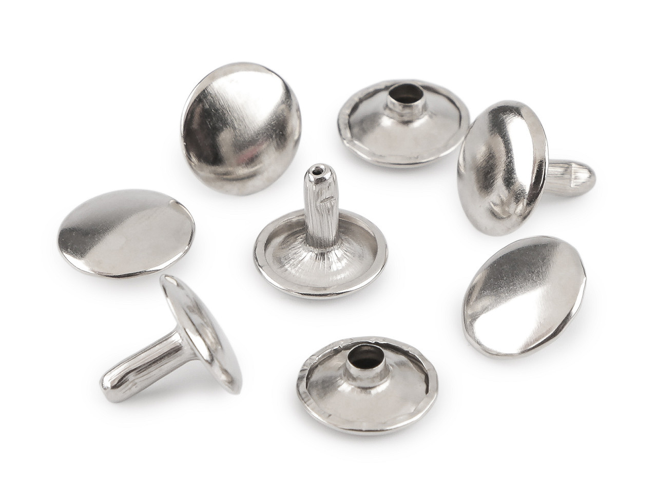 Oboustranné kovové nýty jsou ideální pro pevné spojení vrstev materiálu, například při výrobě kabelek, opasků, peněženek a dalších kožených či textilních výrobků. Skládají se ze dvou částí a jejich aplikace vyžaduje piston a lis (kódy 100129 nebo 129134).