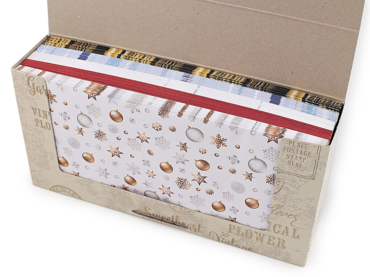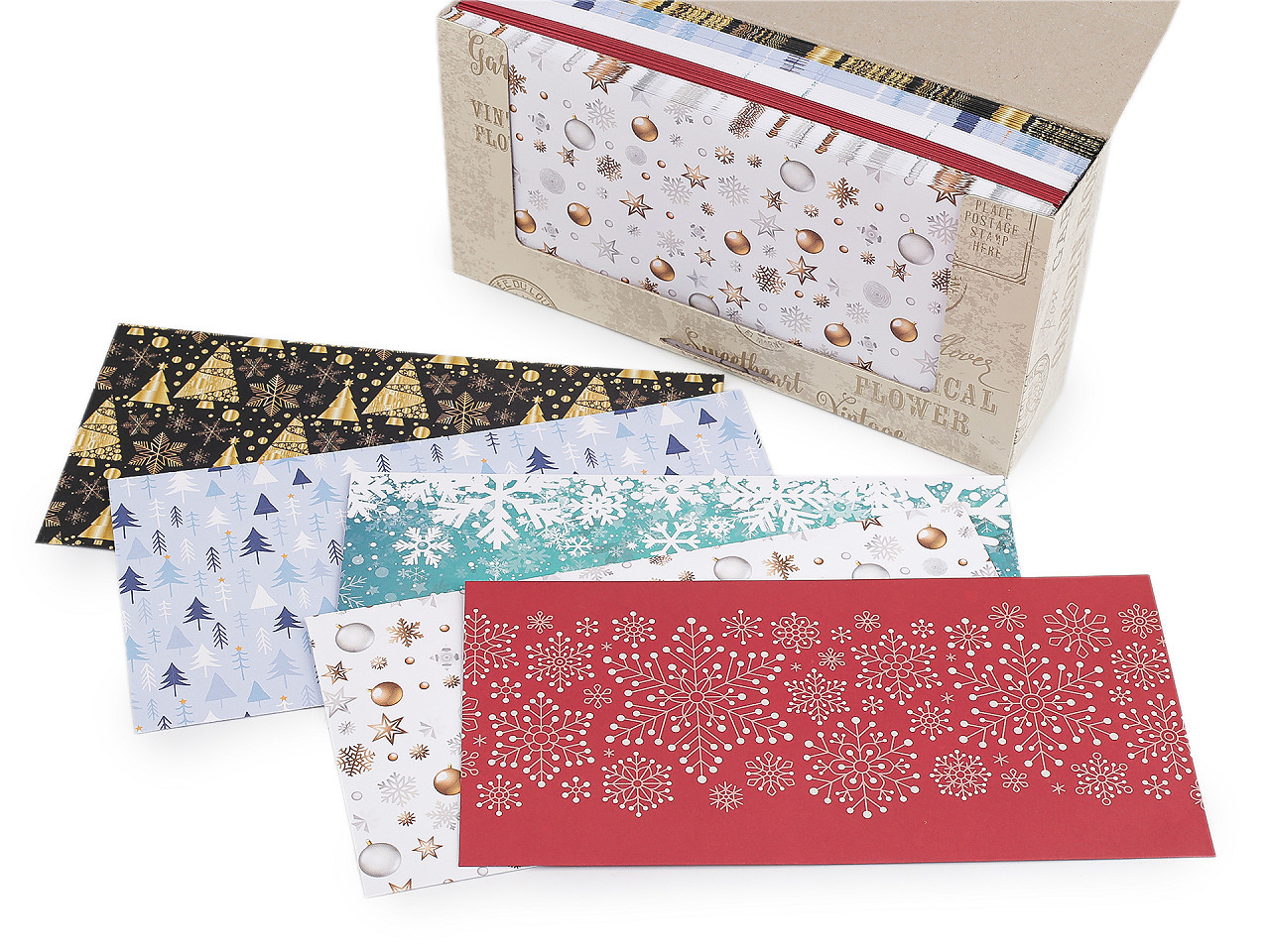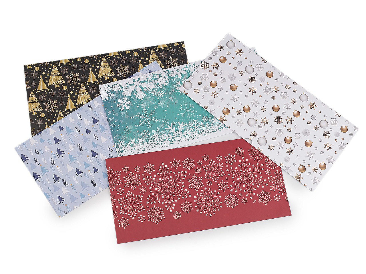 Vánoční papírová obálka je perfektní volbou, jak darovat peníze, dárkové poukazy nebo přáníčka stylově a s pravou vánoční atmosférou. Typ DL (11x22 cm) zajišťuje, že se dovnitř pohodlně vejde papír formátu A4 složený na třetiny. Kvalitní proužek s lepidlem umožňuje snadné a bezpečné zalepení obálky. V originálním balení v krabičce naleznete 5 různých motivů, každý po 20 kusech – celkem tedy 100 ks obálek. Ideální řešení pro všechny, kteří chtějí své vánoční dárky předat elegantně a prakticky,
