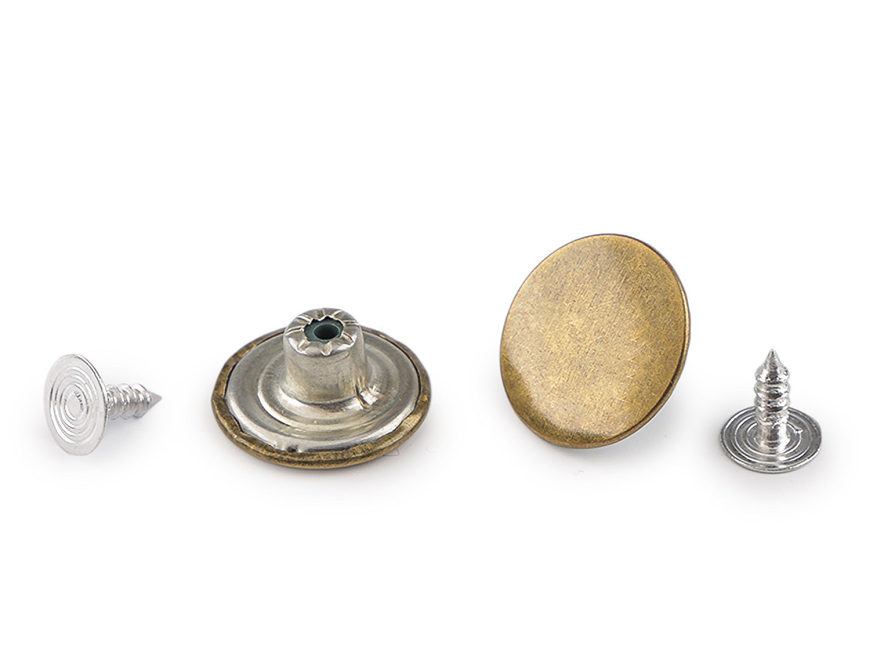 Kovový riflový knoflík Jeans je ideální volbou pro opravu nebo výrobu džín, sukní, šatů, bund i vest. Knoflík se skládá ze dvou částí, které do sebe snadno narážíte například kladivem – žádné šití není potřeba. Díky délce nýtu 7,7 mm je vhodný pro silnější materiály, typické pro denim. Knoflík je pevný, odolný a zajišťuje dlouhou životnost vašeho oblečení. Vsaďte na jednoduchou montáž a univerzální použití.