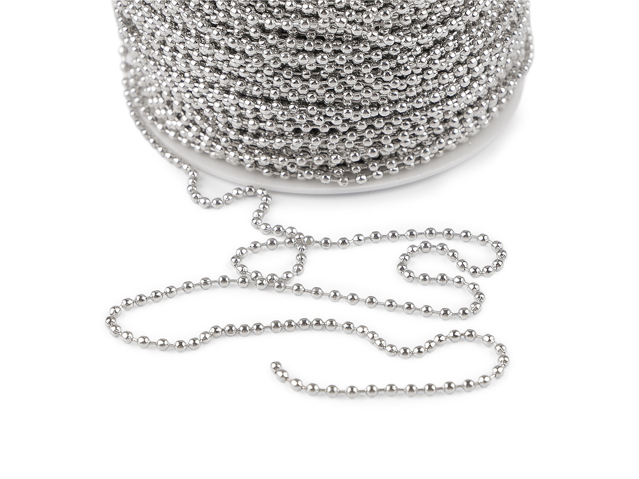 Praktický kuličkový řetízek je ideální volbou pro připevnění přívěsků na kabelky, tašky, batohy nebo jako stylové poutko na kabáty, mikiny a bundy. Skvěle poslouží i jako visačka na oděvy, kde nelze použít špendlík – chrání materiál před poškozením. Je vhodný jako dekorace pro kabelky, ledvinky či batohy. Pro jednoduché sepnutí řetízku doporučujeme kovovou spojku 150646. Výhodou je snadná manipulace, univerzální využití a možnost úpravy délky podle potřeby.