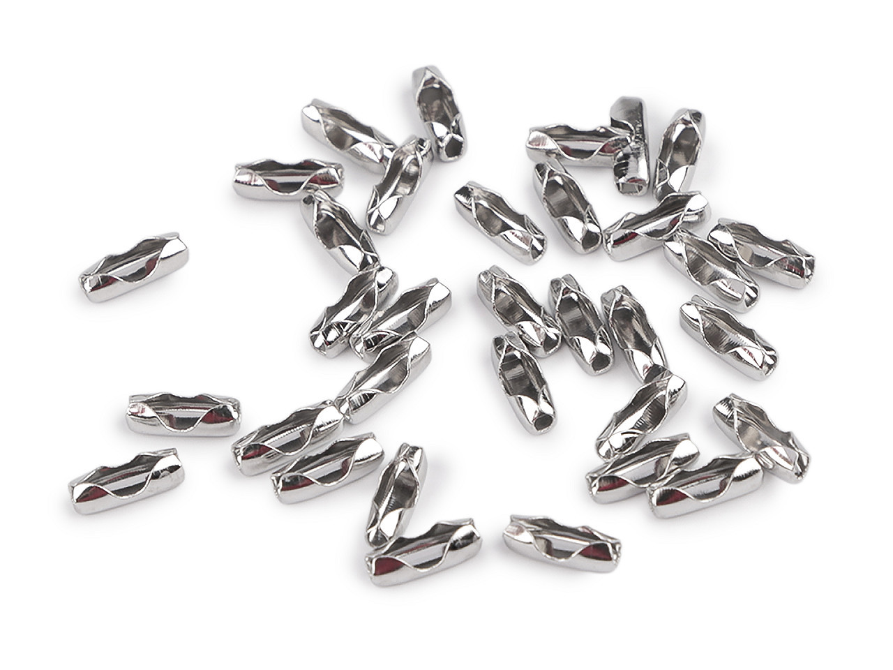 Kovová spojka z nerezové oceli je ideální pro kuličkový řetízek (kód 150644). Umožňuje rychlé a efektivní spojení konců řetízku, čímž vytvoříte uzavřené poutko vhodné pro připevnění přívěsku na kabelky, tašky nebo jako visačku na oděvy. Díky jednoduchému zaháknutí posledních kuliček do očka je použití velmi snadné. Nerezová ocel zaručuje dlouhou životnost a odolnost. Skvělá alternativa ke špendlíku, který může poškodit oděv.