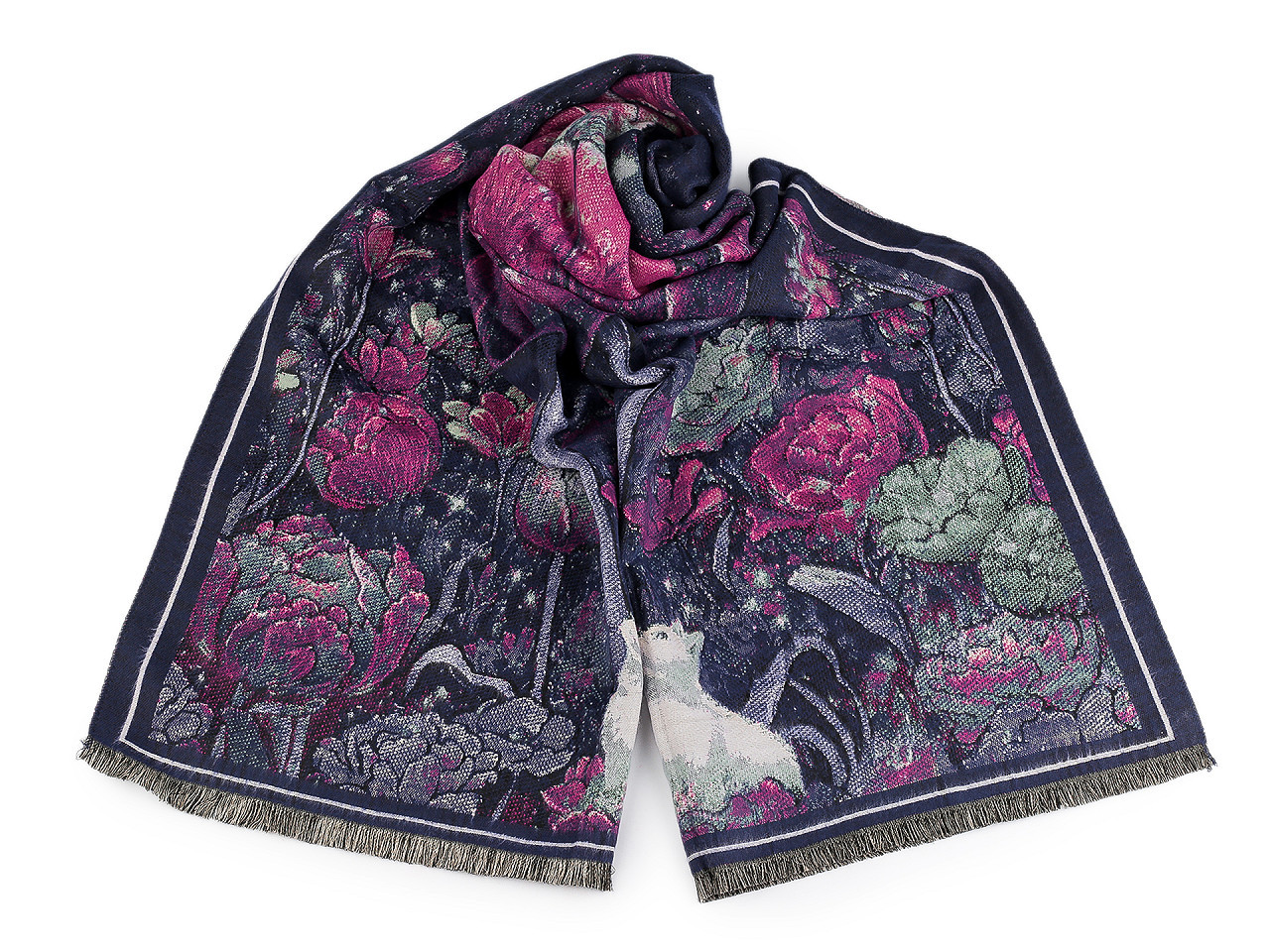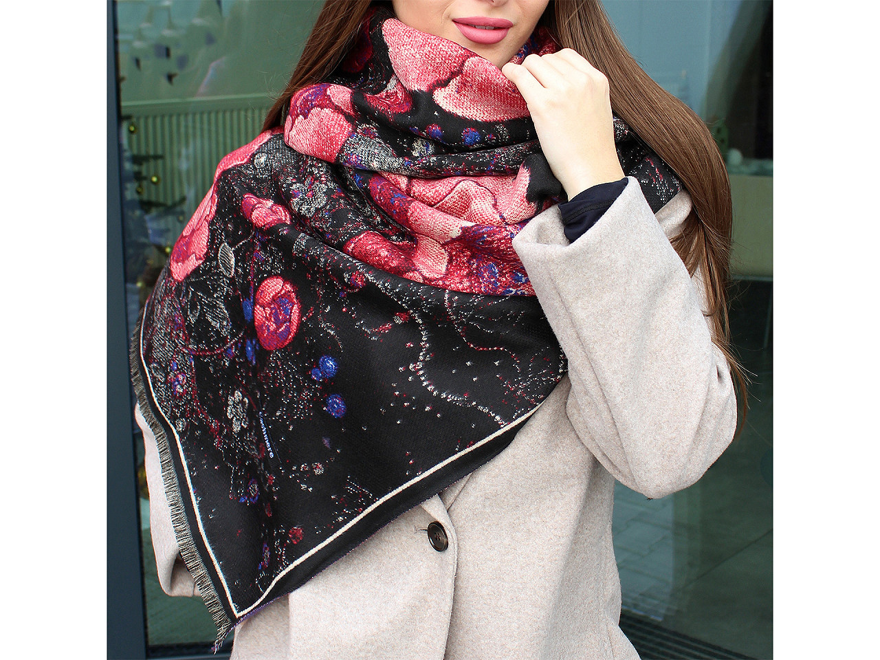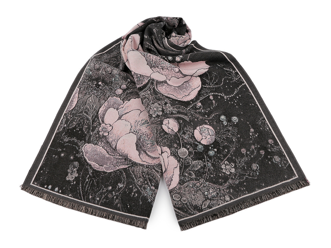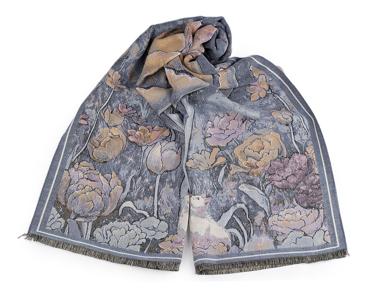 Dopřejte si jedinečný doplněk, který vás zahřeje i ozdobí. Tento velký šátek typu kašmír s elegantním květinovým motivem je vyrobený z hřejivého a hebkého materiálu (viskóza a polyester), který je velmi příjemný na dotek. Díky své téměř dvoumetrové délce nabízí široké možnosti nošení – stylově se hodí ke kabátu, bundě i svetru. Zakončení s krátkými třásněmi dodává šátku moderní vzhled.