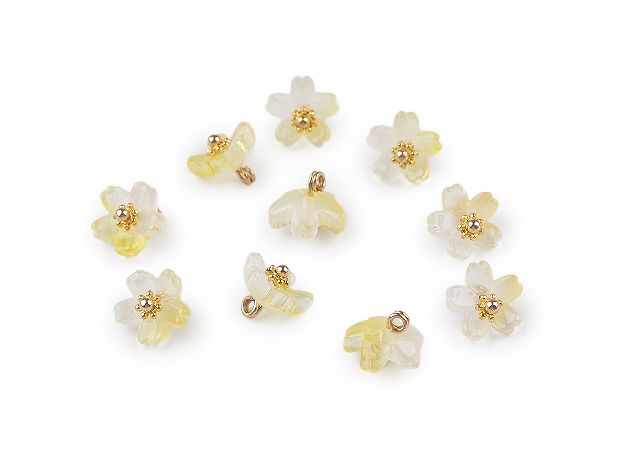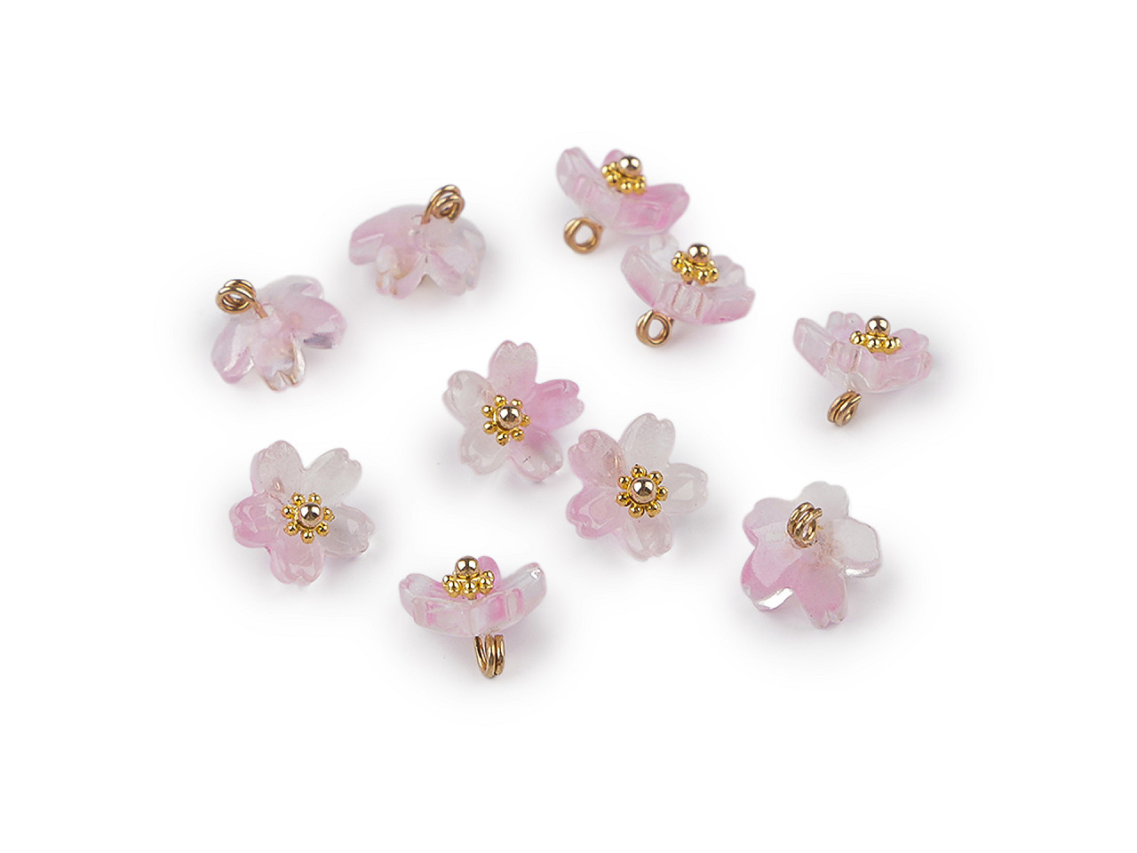Plastové korálky květů s kovovým středem zaujmou svým jemným a autentickým zpracováním. Díky zajímavému probarvení jsou ideální pro tvorbu květinových šperků, ale také pro dekoraci postaviček víl a skřítků. Kovový střed je na zadní straně opatřen očkem, což umožňuje snadné zavěšení jako přívěsek nebo navlékání a ketlování. Jsou vhodné i na tvorbu půvabných květinových hroznů. Skvělá volba pro kreativní korálkářky, které hledají originální a univerzální komponenty pro své projekty.