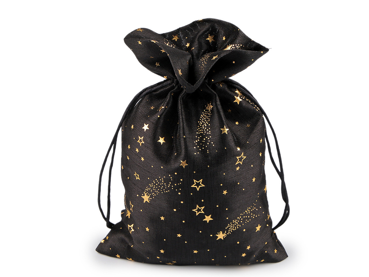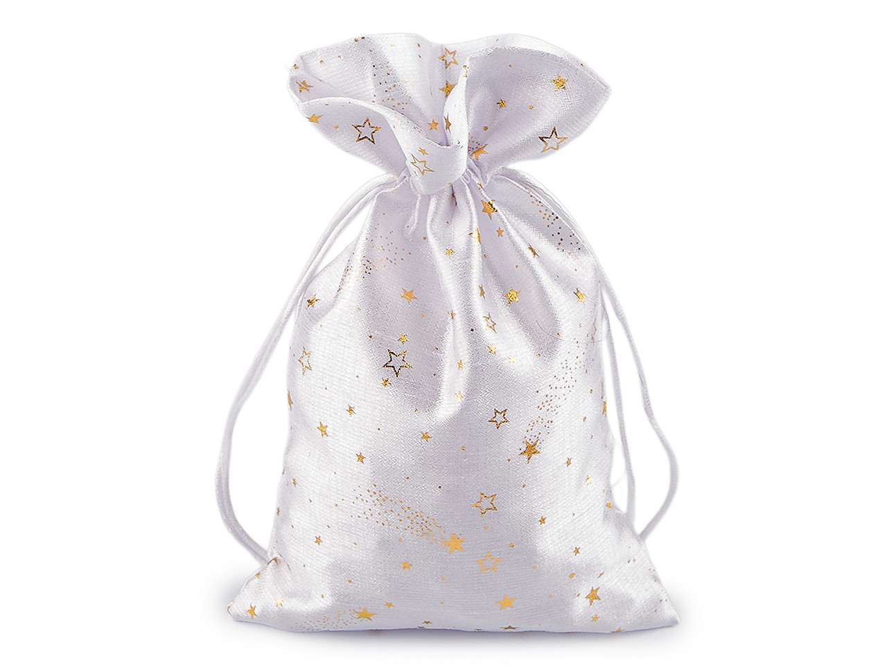 Elegantní vánoční dárkový pytlík je ideální volbou pro originální zabalení dárků i mikulášské nadílky. Ozdobený zlatými metalickými hvězdičkami z obou stran působí luxusně a dodá vašim dárkům slavnostní nádech. Snadné uzavírání pomocí kulatých saténových šňůrek šetří čas při balení a dárku dodá osobní půvab. Pytlík lze využít také jako vánoční dekoraci – ozdobí každý interiér. Udělejte svým blízkým radost stylovým balením, které zaujme a potěší.