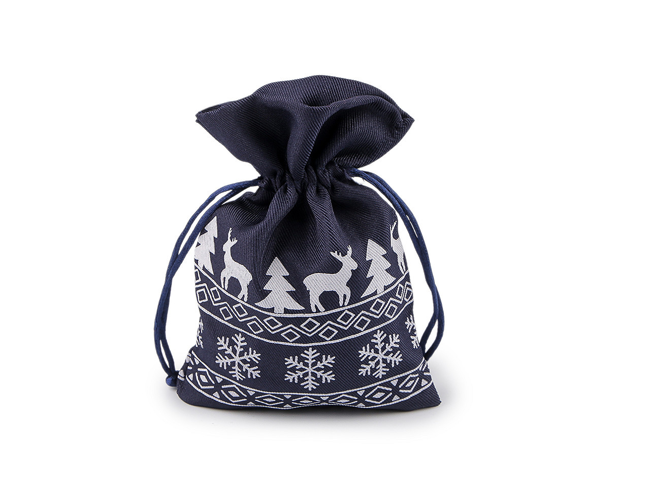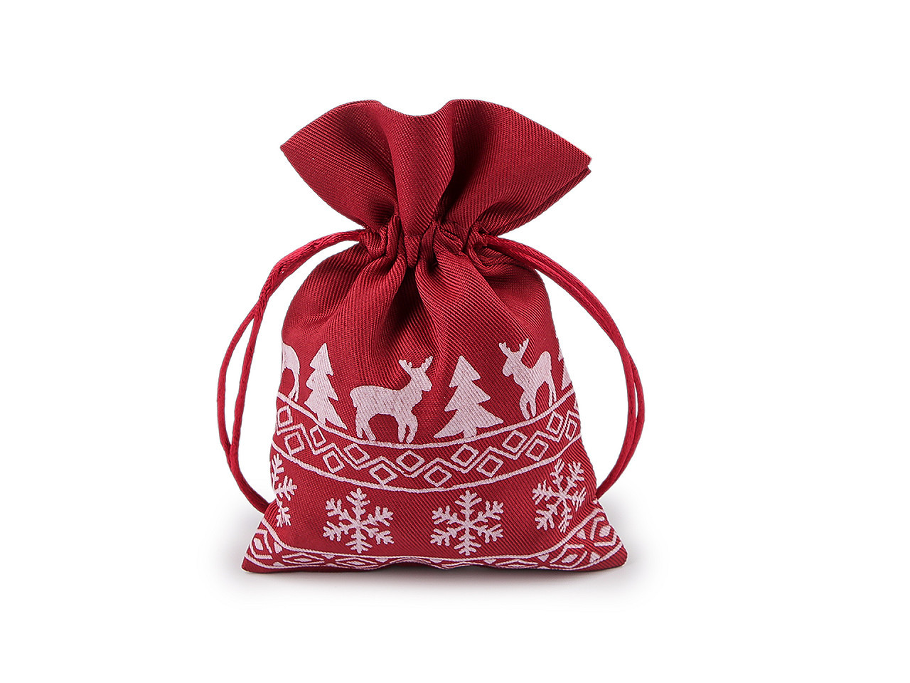 Ozdobte své dárky originálně. Tento vánoční dárkový pytlík je z obou stran potištěný roztomilými soby, stromečky a vločkami, takže potěší malé i velké. Je ideální na balení menších dárků nebo mikulášské nadílky a ušetří vám čas při balení. Snadno se zavírá pomocí kulatých saténových šňůrek, které dodají vašemu dárku osobní kouzlo a půvab. Pytlík můžete využít i jako stylovou vánoční dekoraci. Vsaďte na praktičnost i estetiku v jednom.