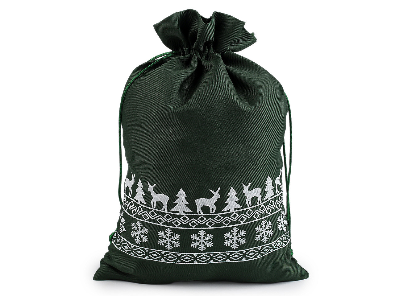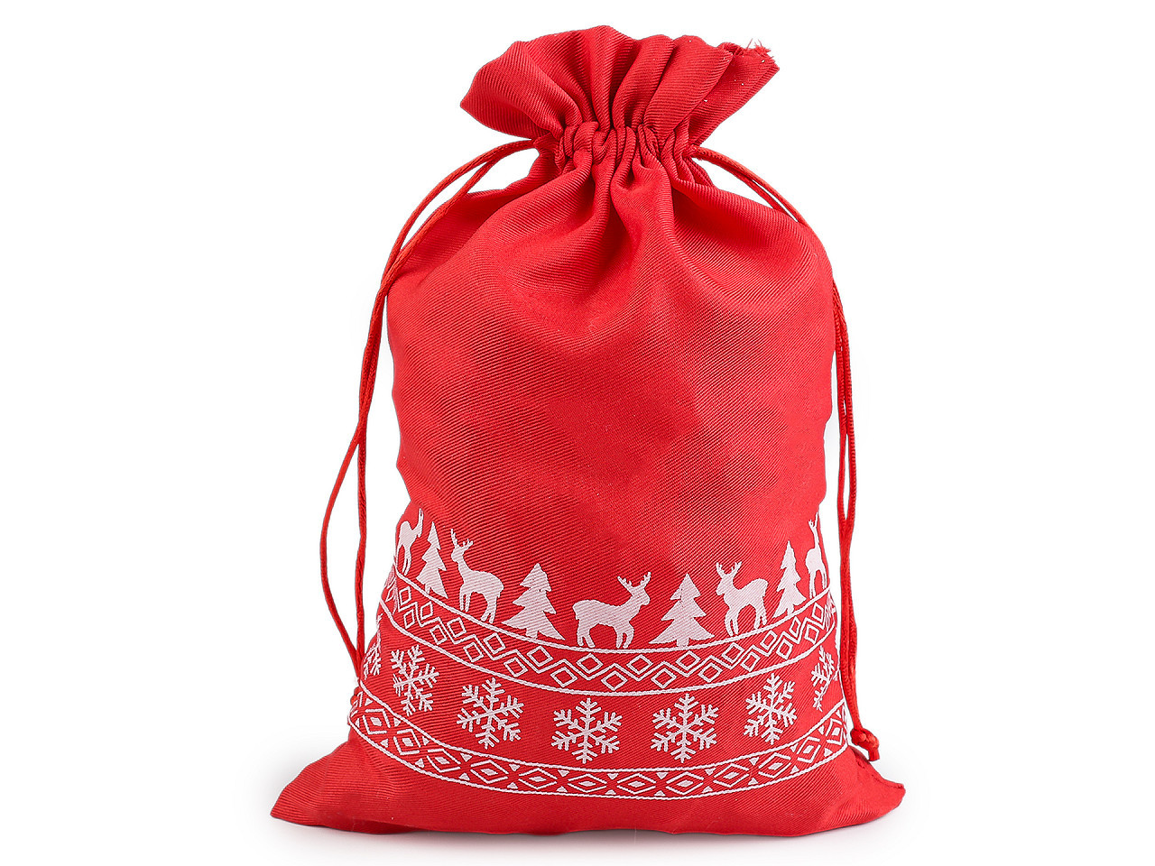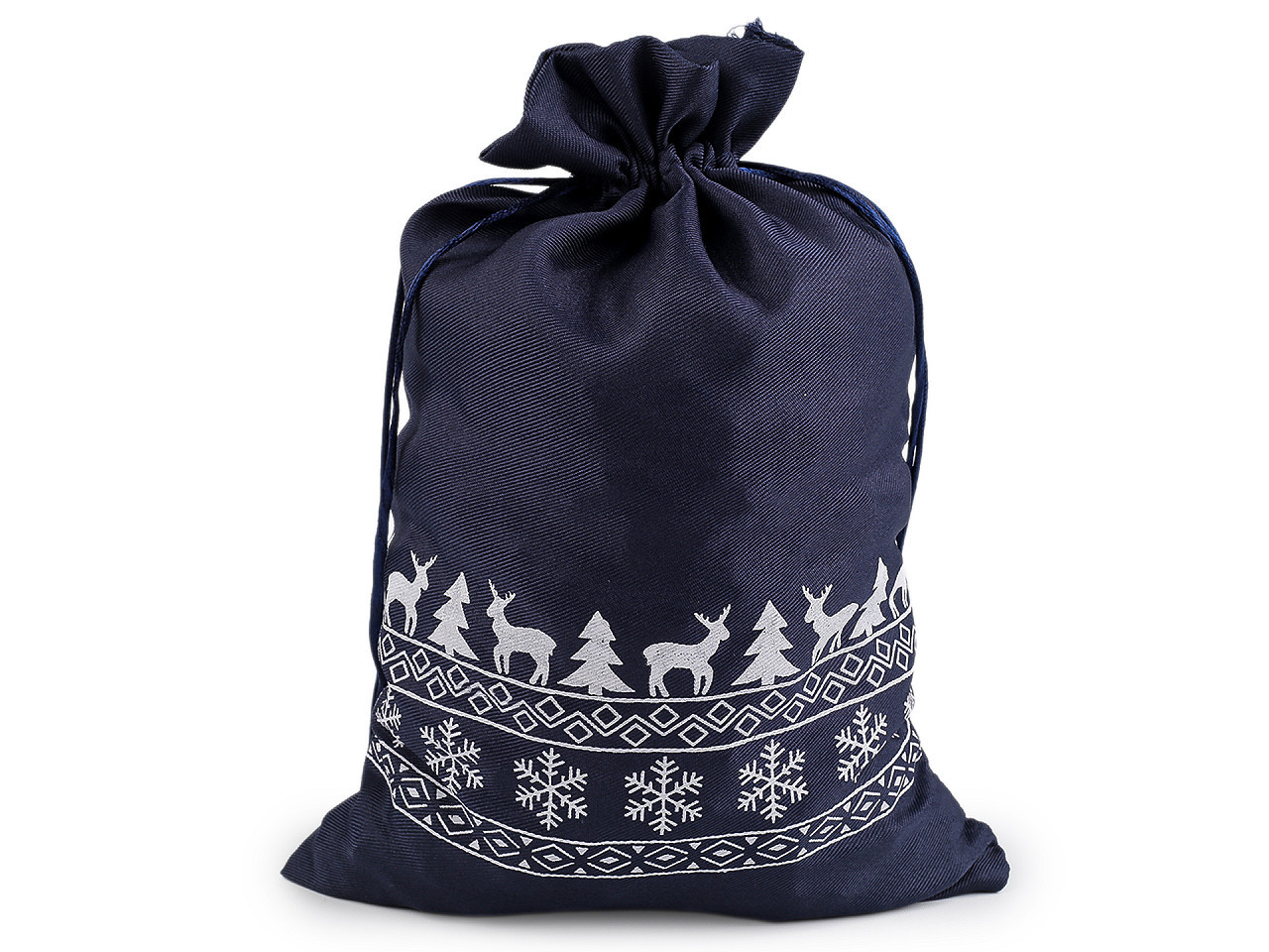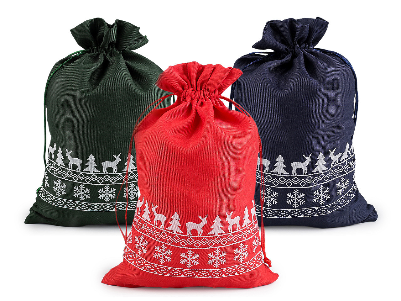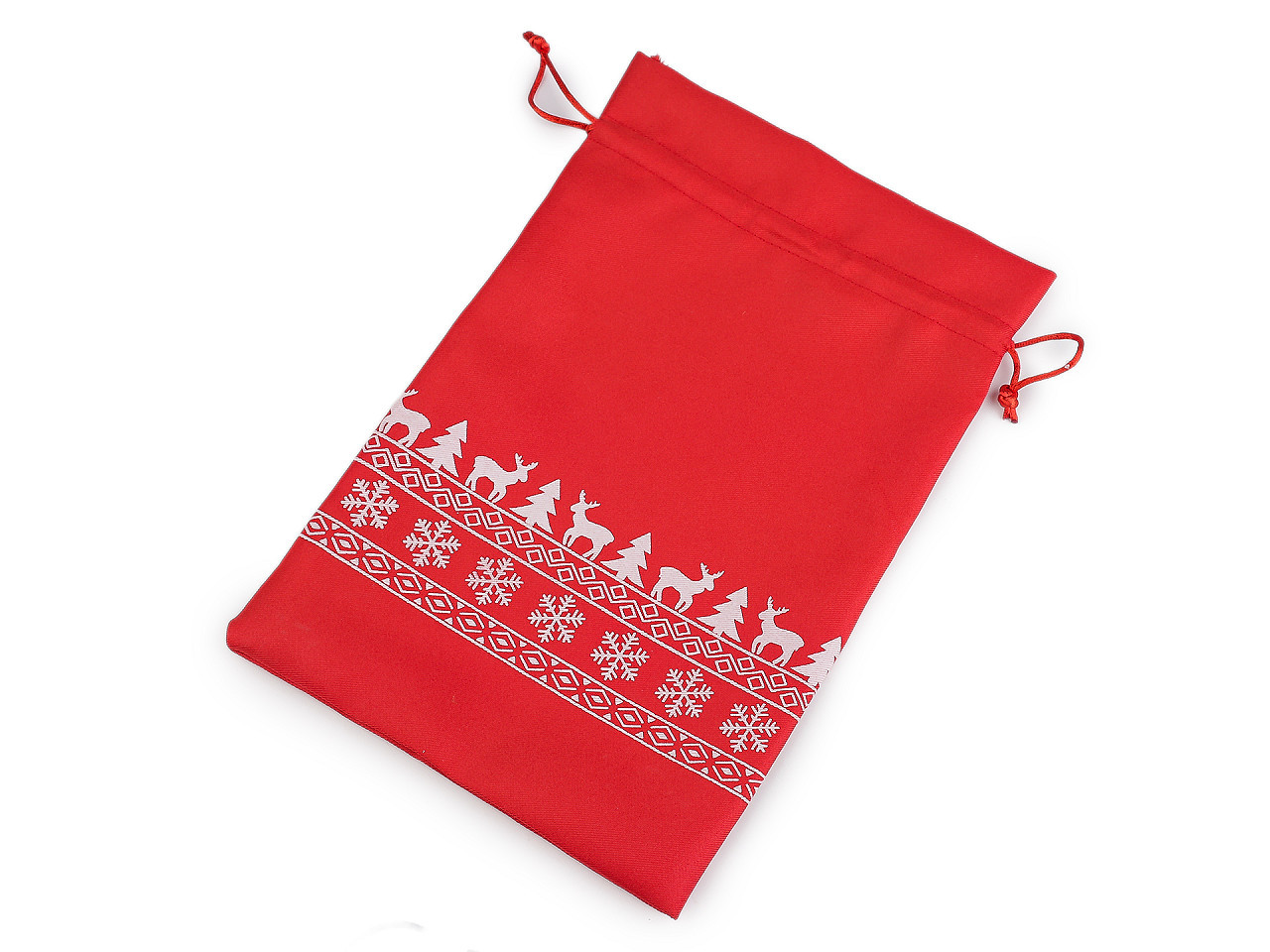 Krásný vánoční dárkový pytlík je ozdobený z obou stran veselým potiskem sobů, stromečků a vloček. Skvěle se hodí na balení vánočních dárků nebo mikulášské nadílky – ušetří vám čas a zároveň dárku dodá osobní kouzlo. Praktické kulaté saténové šňůrky umožní snadné a rychlé uzavření pytlíku. Dá se také stylově naaranžovat jako vánoční dekorace. Potěšte své blízké originálním a půvabným balením.