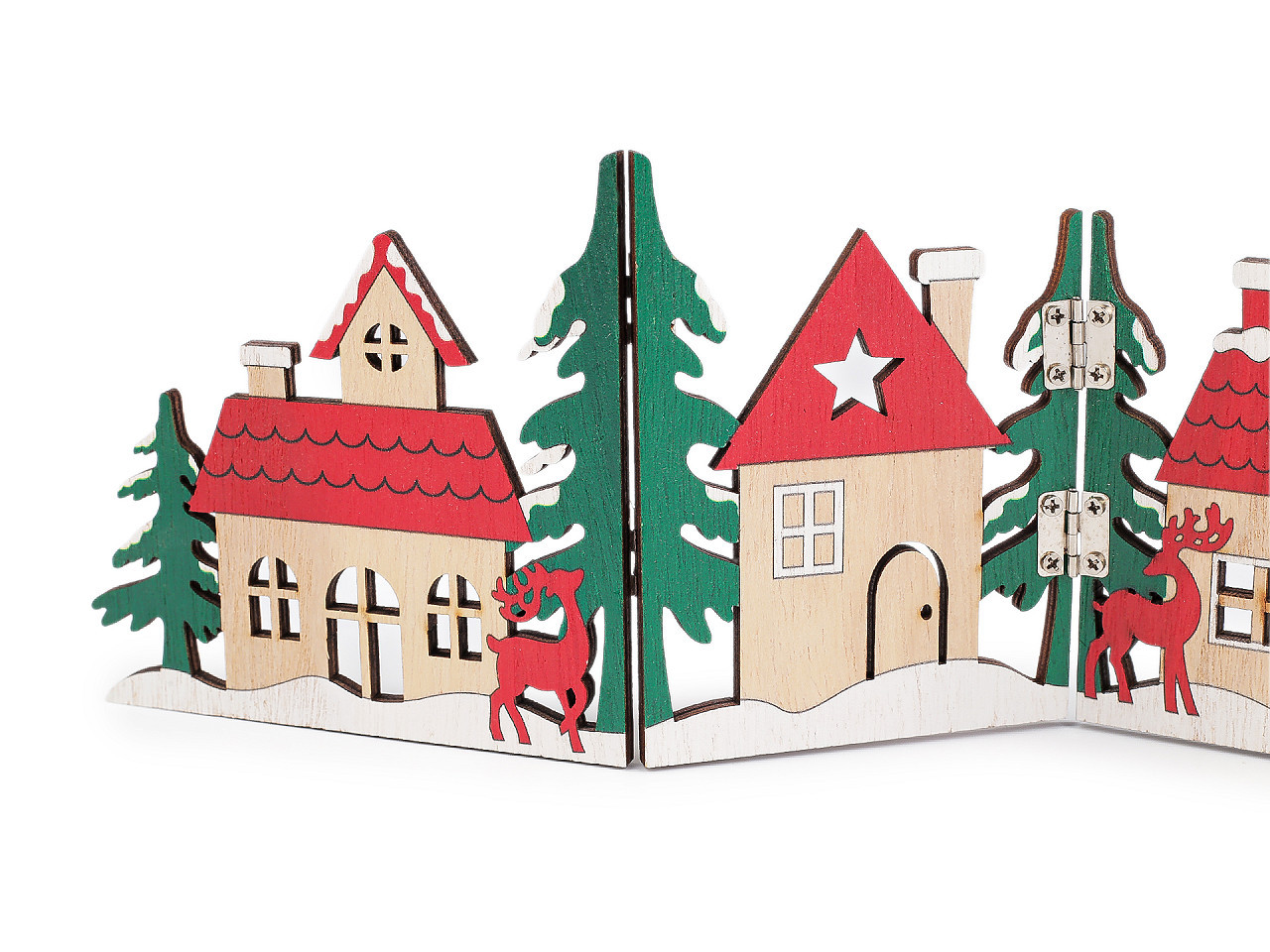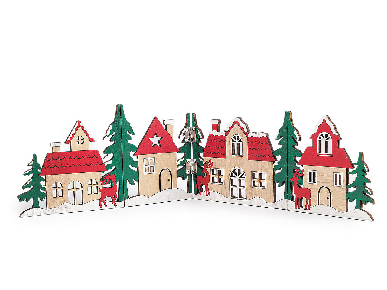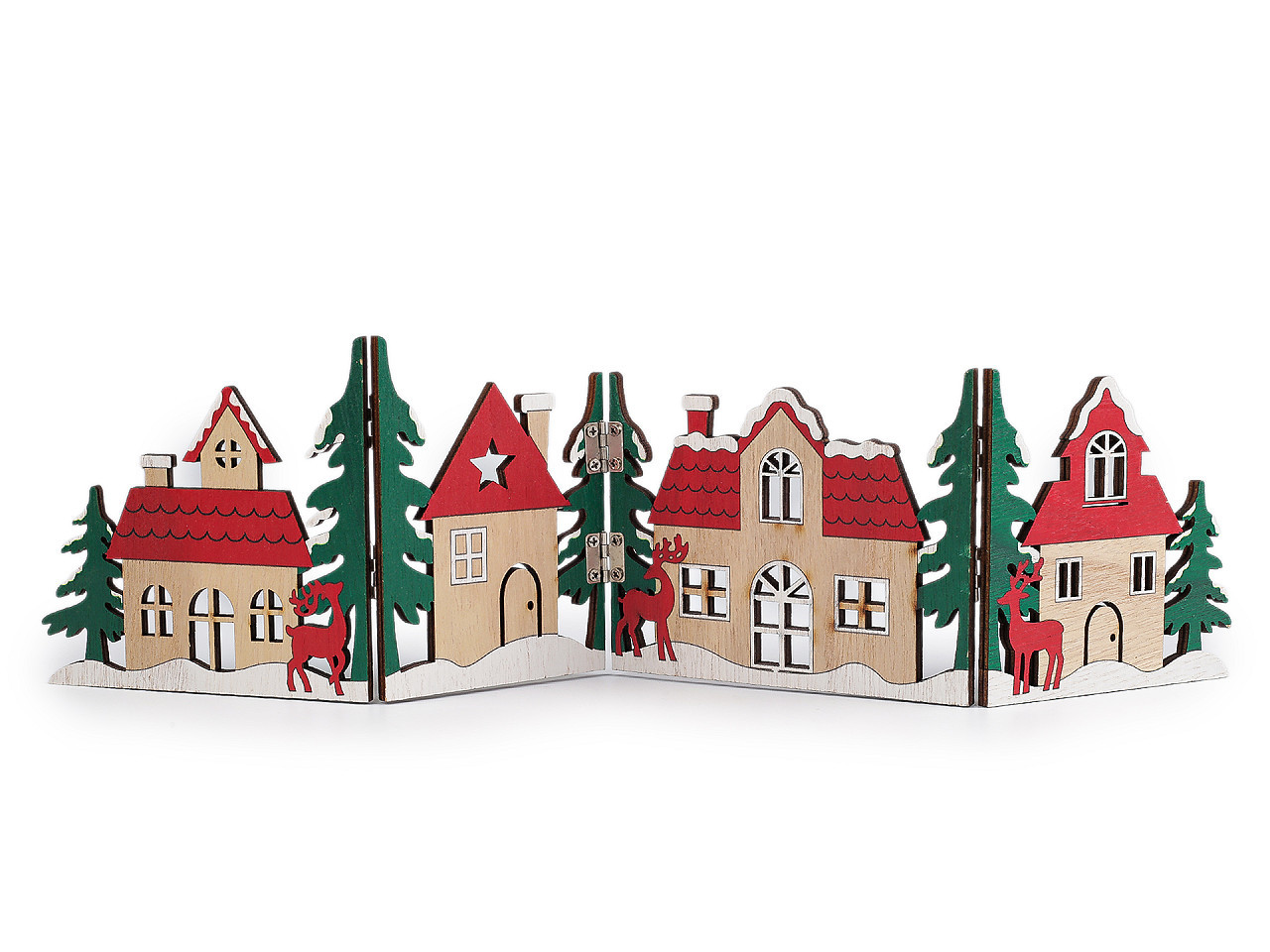 Vytvořte si ve vašem domově stylovou zimní atmosféru s touto precizně zpracovanou dřevěnou skládací vesničkou. Tyto domečky nejsou jen dekorace, jsou to malé architektonické kousky, které dodají teplo a osobitost každému interiéru.