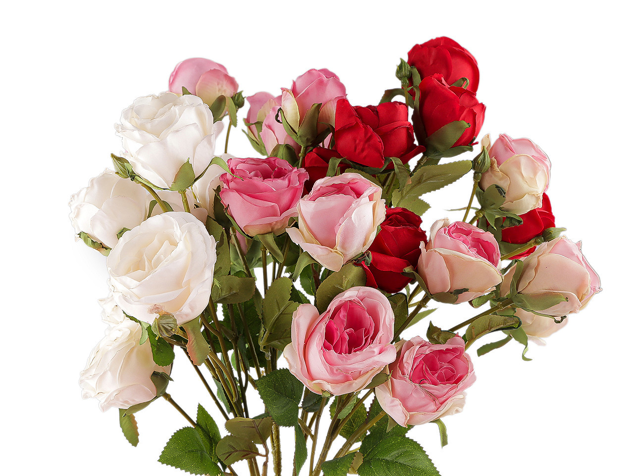 Vytvořte si elegantní a trvalou dekoraci s naší nádhernou umělou kyticí růží. Tyto realisticky působící růže vnesou do každého prostoru romantickou atmosféru. Každý stonek nese 7 květů s průměrem cca 5 cm, které jsou perfektní pro umístění do vázy, ale i pro zapojení do větších květinových vazeb či ikeban. Jsou ideální volbou pro dlouhodobé zkrášlení interiéru, protože nikdy neuvadnou a nevyžadují žádnou péči. Díky drátu uvnitř stonku je navíc můžete snadno ohýbat a tvarovat pro dokonalé aranžmá.