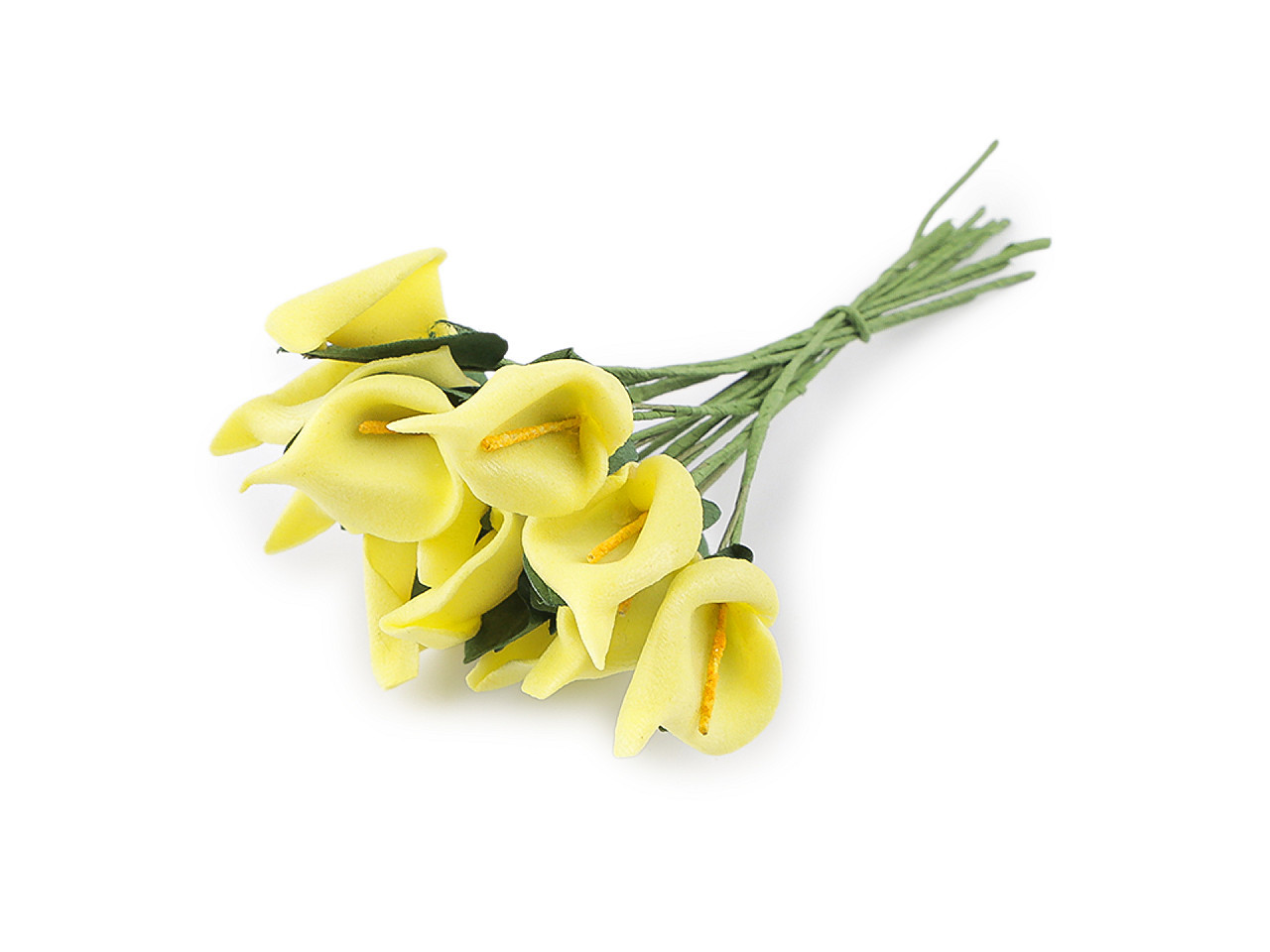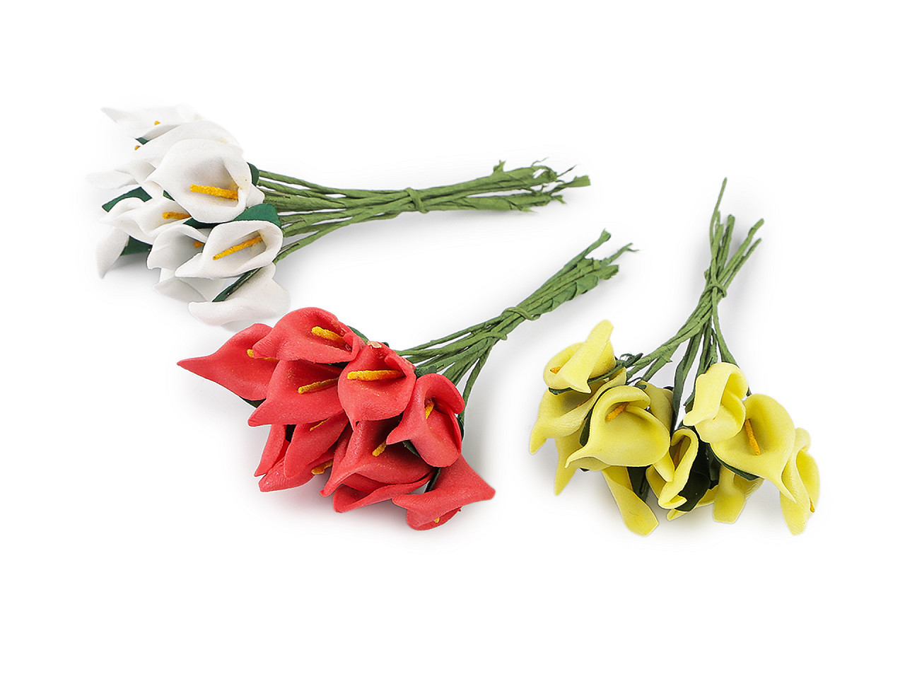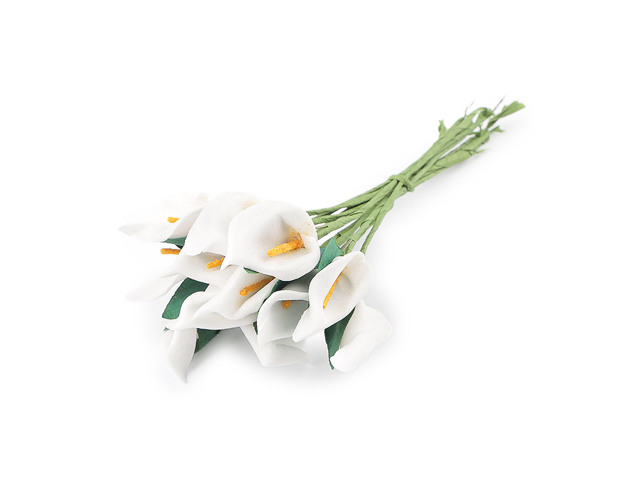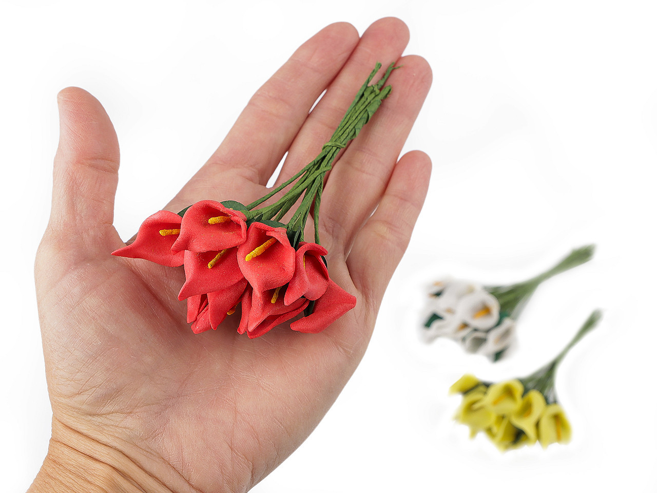 Oživte své projekty s naší umělou mini kalou. Tato zajímavě propracovaná kala je vyrobena z lehké pěnové gumy a je ideální pro detailní květinová aranžmá. Díky integrovanému drátku je její připevnění do svatebních voniček, na věnce či při výrobě dekorací maximálně snadné a pohodlné. Pěnové mini kaly dodají elegantní a jemný akcent každé kompozici.