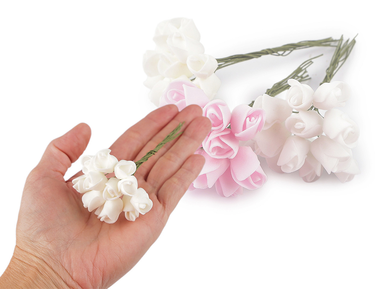 Přidejte romantický a jemný prvek do svých tvůrčích projektů s naší umělou mini růží. Tyto drobné růžičky, vyrobené z kvalitní pěnové gumy, jsou dokonalé pro detailní aranžmá. Díky praktickému drátku, který je součástí každé růže, je jejich připevnění do svatebních voniček, na věnce, nebo do jakékoliv květinové dekorace rychlé a snadné. Vytvořte si nezapomenutelné květinové aranžmá s elegantními pěnovými mini růžemi.
