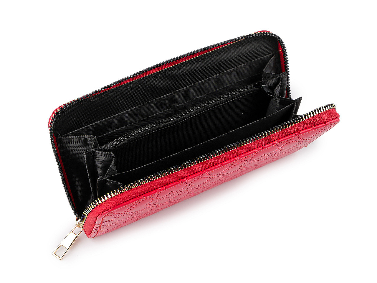 Okouzlující a praktická dámská peněženka s romantickým motivem srdíček je stylovým doplňkem, který si zamilujete. Zapíná se na pevný kovový zip a její vnitřní uspořádání nabízí maximální přehled. Uvnitř najdete tři velké přihrádky na bankovky, uzavíratelnou kapsu na zip ideální pro mince a drobnosti, a dostatek místa na doklady. Po vnitřních stranách jsou speciální přihrádky na karty a dvě větší kapsy na účtenky apod. Tato peněženka kombinuje elegantní vzhled a velký úložný prostor.