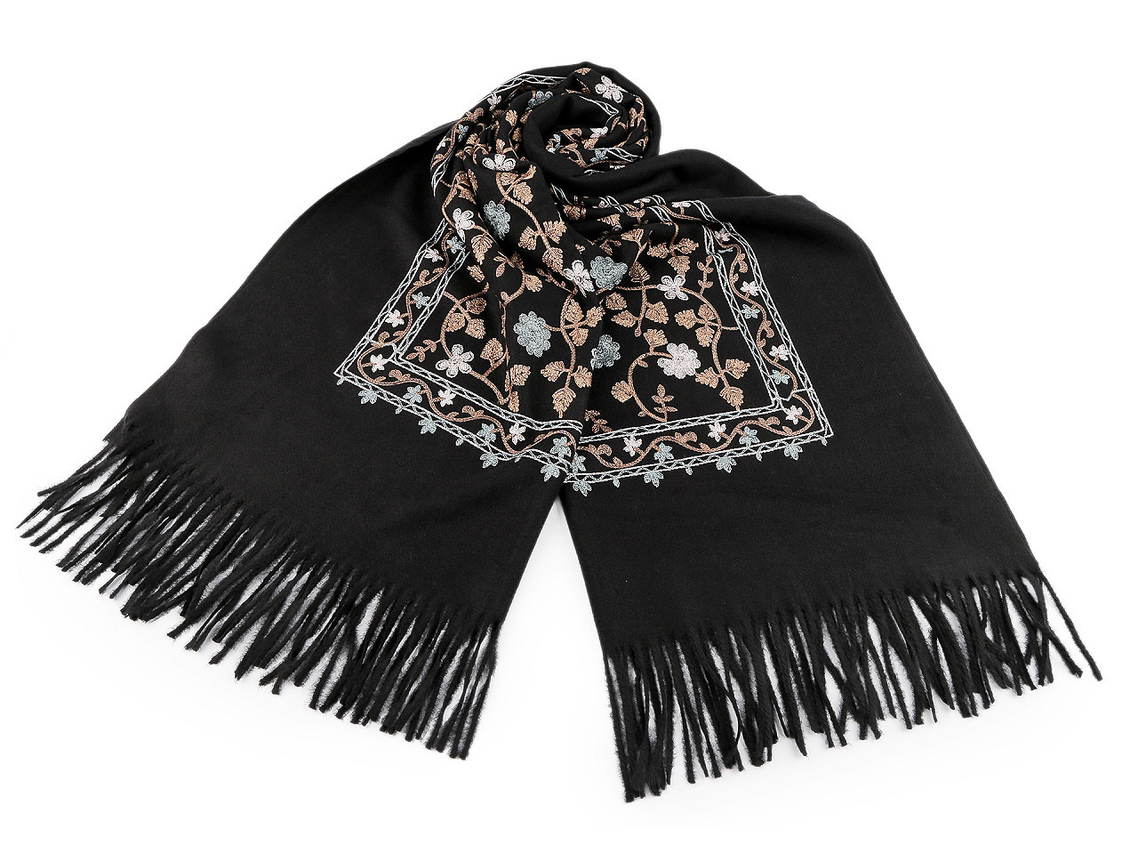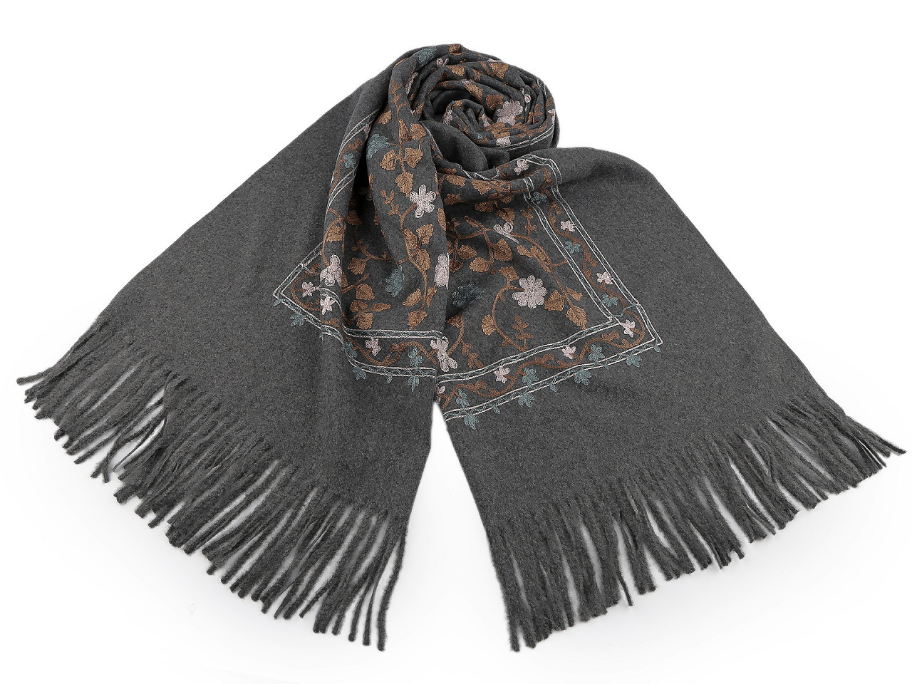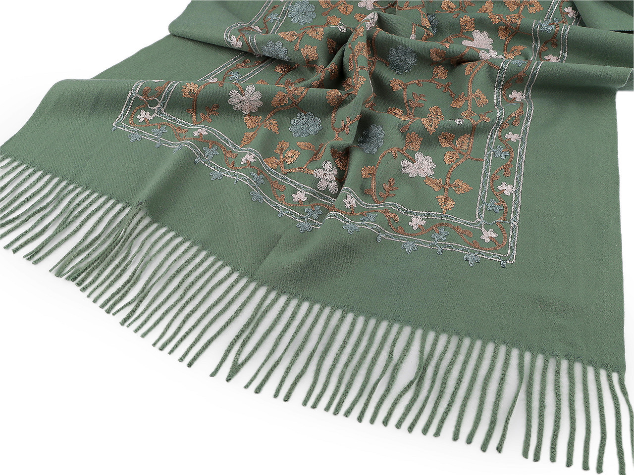 Dopřejte si luxus a hřejivé pohodlí s tímto velkým šátkem, který slouží zároveň jako stylový pléd. Díky materiálu imitujícímu kašmír je mimořádně hebký a garantuje komfortní teplo i v těch nejsychravějších dnech. Jeho hlavní dominantou je nádherná, detailně propracovaná výšivka s jemným leskem, která z něj činí elegantní módní doplněk. Šátek je na koncích zakončený dlouhými třásněmi, které podtrhují jeho sofistikovaný vzhled. Ať už míříte do práce, na společenskou událost nebo jen na procházku, tento pléd s grácií dozdobí každý váš outfit. (Složení materiálu: viskóza a polyester pro maximální hebkost a kvalitu.)