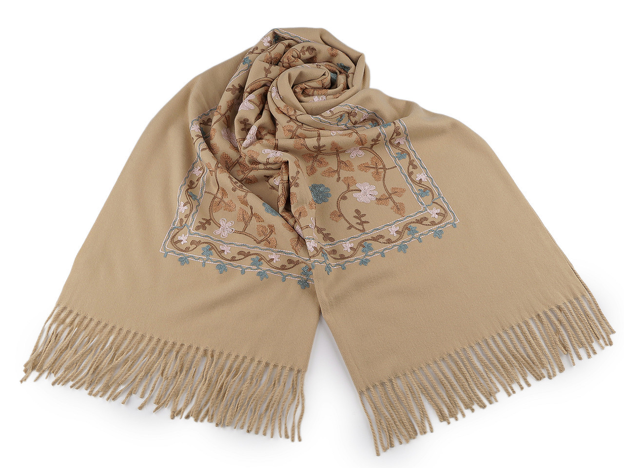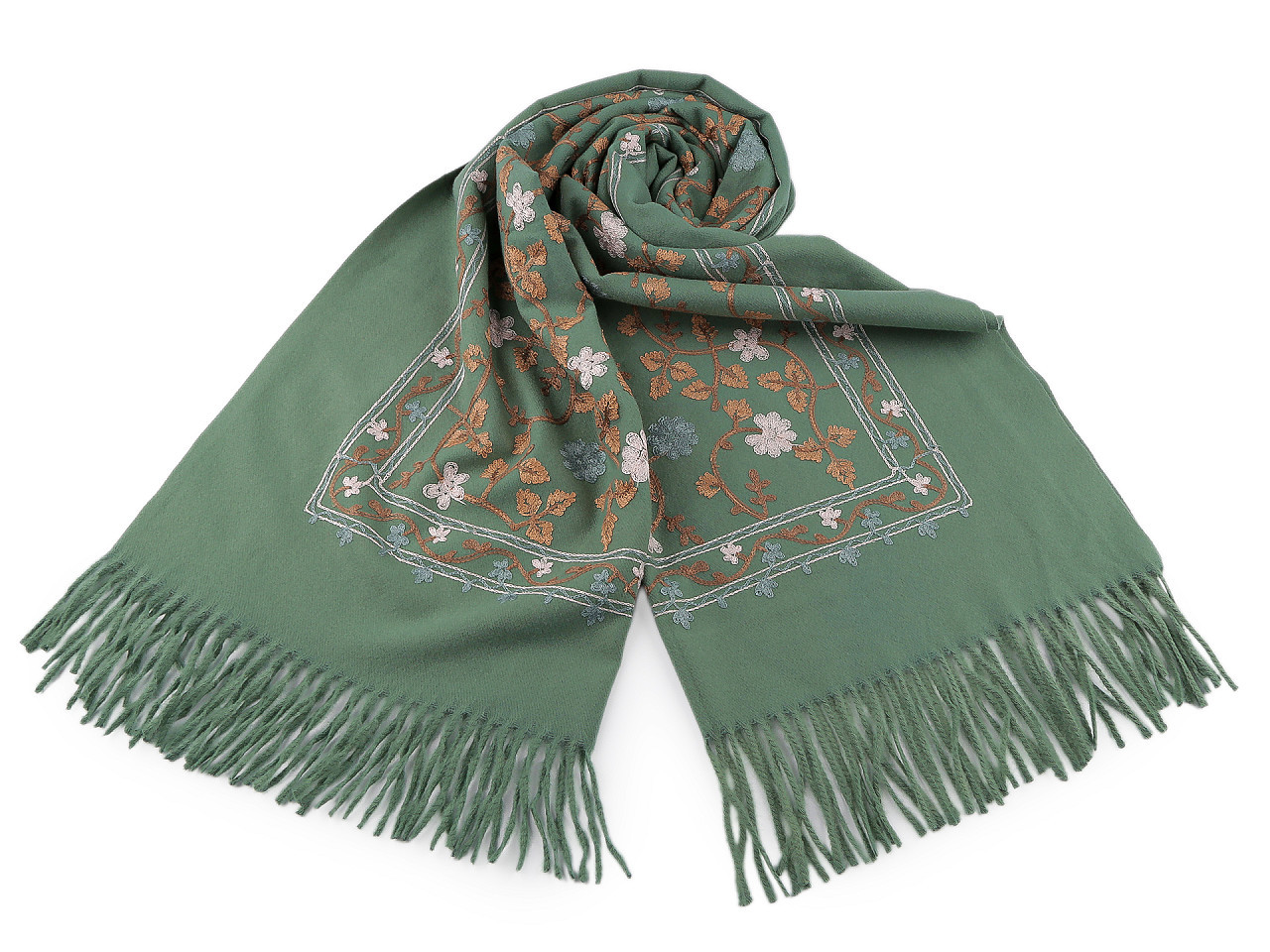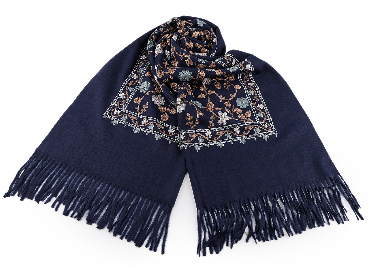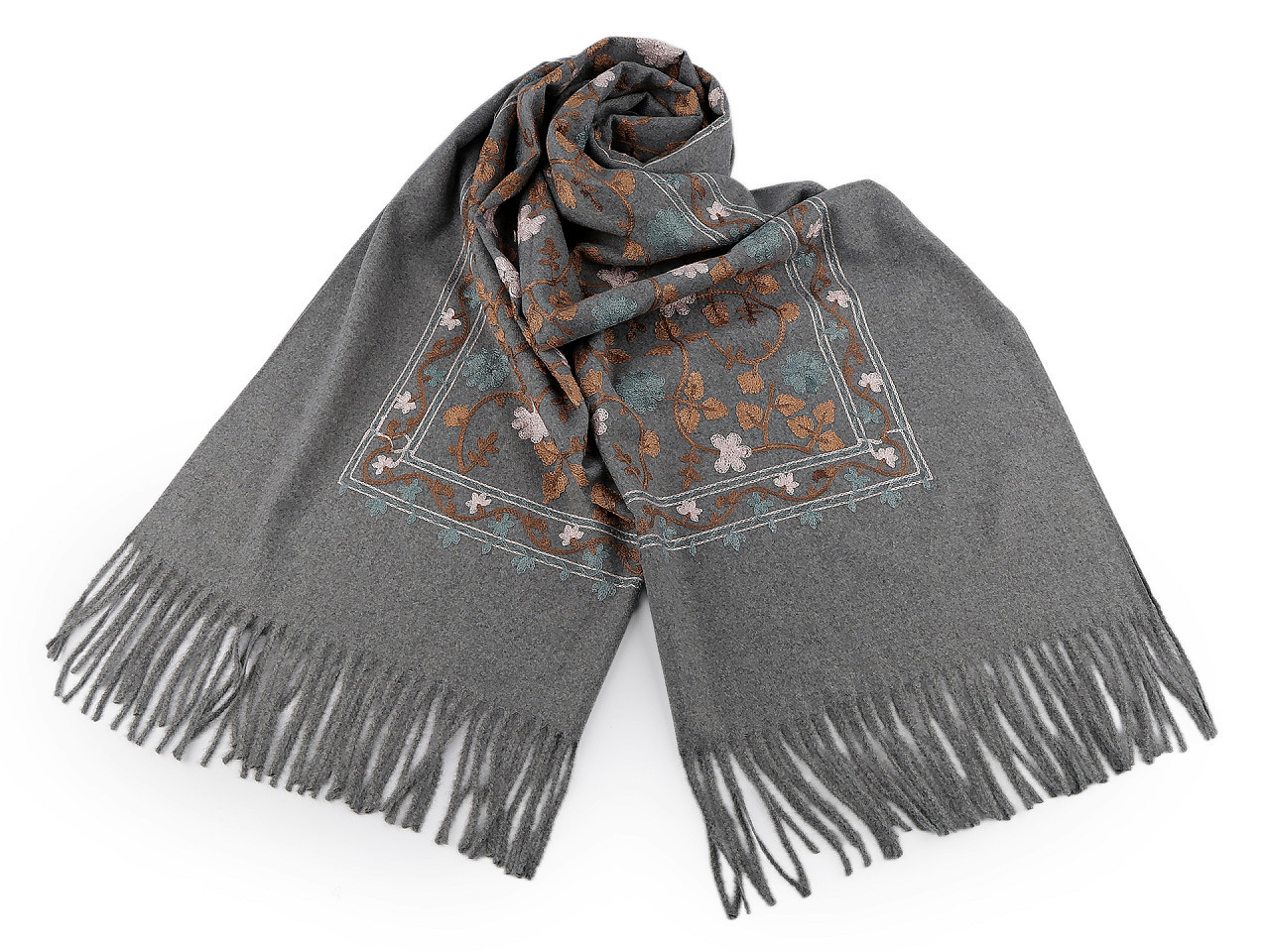 Dopřejte si luxus a hřejivé pohodlí s tímto velkým šátkem, který slouží zároveň jako stylový pléd. Díky materiálu imitujícímu kašmír je mimořádně hebký a garantuje komfortní teplo i v těch nejsychravějších dnech. Jeho hlavní dominantou je nádherná, detailně propracovaná výšivka s jemným leskem, která z něj činí elegantní módní doplněk. Šátek je na koncích zakončený dlouhými třásněmi, které podtrhují jeho sofistikovaný vzhled. Ať už míříte do práce, na společenskou událost nebo jen na procházku, tento pléd s grácií dozdobí každý váš outfit. (Složení materiálu: viskóza a polyester pro maximální hebkost a kvalitu.)