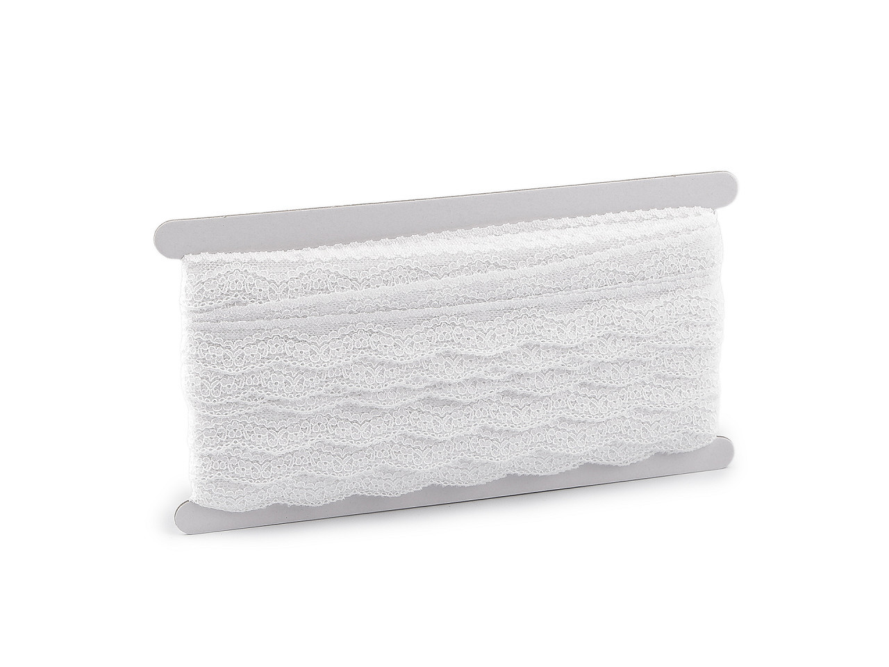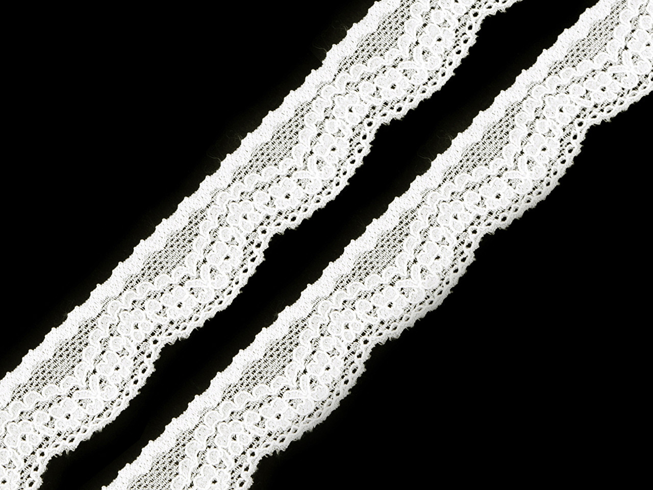 Důležité upozornění pro šití: Pro zajištění dlouhé životnosti a zachování pružnosti krajky doporučujeme při šití pečlivě zajistit okraj přeplátováním švu nebo jiným technologickým postupem, který zamezí volnému pohybu a vytahování pružných nití. Mějte na paměti, že se šíře krajky může vlivem technologických postupů lišit o ±6 %.