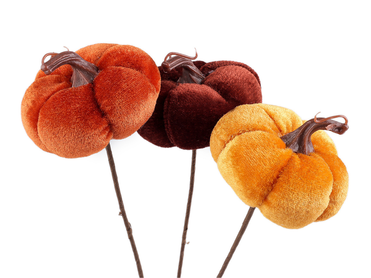 Obohaťte svou podzimní výzdobu o tento stylový a luxusní prvek! Sametová dýně na zápich vyniká svým měkkým povrchem, který jí dodává elegantní a prémiový vzhled. Dýně je umístěna na dlouhém a pevném stonku, což zajišťuje její snadné a stabilní umístění v jakékoliv kompozici. Ideální do podzimních vazeb, truhlíků, květináčů i na věnce. Přidejte své dekoraci dotek luxusu.