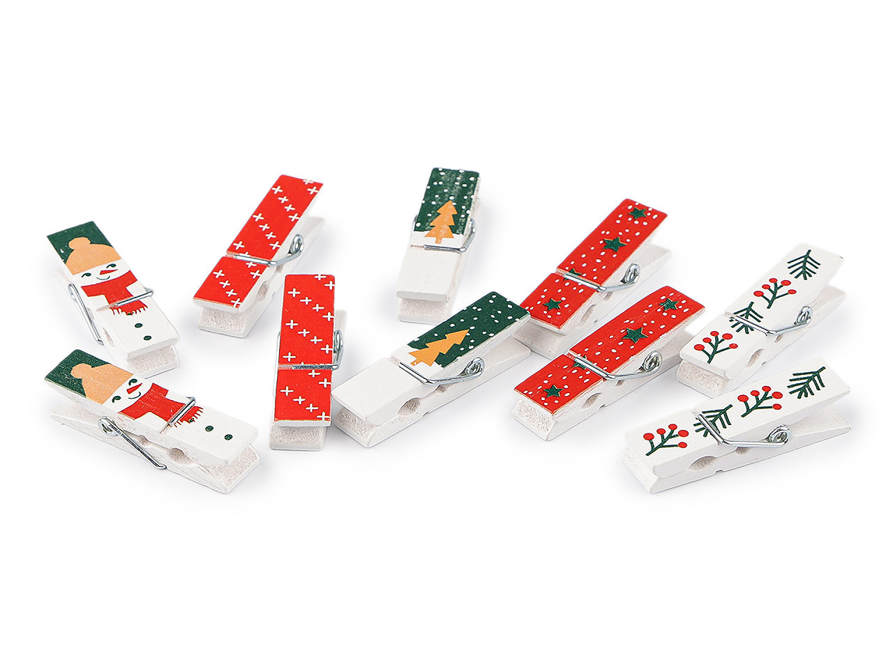 Vneste kouzlo Vánoc do svých dekorací s dřevěnými kolíčky s vánočním potiskem. Stylově ozdobí dárky, dárkové tašky, květináče i květinové vazby. Skvěle se hodí také na výrobu adventního kalendáře nebo k uchycení fotografií a obrázků na provázek. Jednostranný vánoční motiv dodá vašim výtvorům originální vzhled. Ideální doplněk pro kreativní tvoření a slavnostní atmosféru.