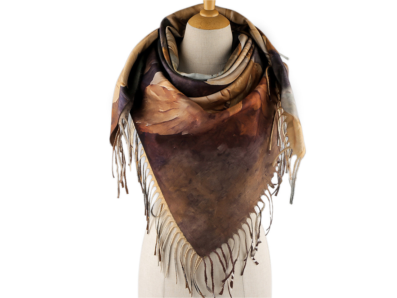 Oboustranný maxi šátek s třásněmi a květinovým vzorem je stylový doplněk, který vás nejen zahřeje, ale i rozzáří váš outfit. Díky kvalitnímu materiálu z polyesteru a viskózy je šátek mimořádně měkký a příjemný na dotek. Elegantní dlouhé třásně na dvou koncích dodávají šátku šmrnc a originalitu. Perfektně se hodí ke kabátu, bundě i svetru, takže jej využijete v každém ročním období. Univerzální design a praktické rozměry umožňují různé způsoby nošení. Výhody produktu: oboustranné provedení, moderní květinový vzor, hřejivý a pohodlný materiál, stylové třásně a možnost kombinace s různými typy oblečení. Skvělá volba pro všechny, kdo chtějí být elegantní a v teple zároveň.