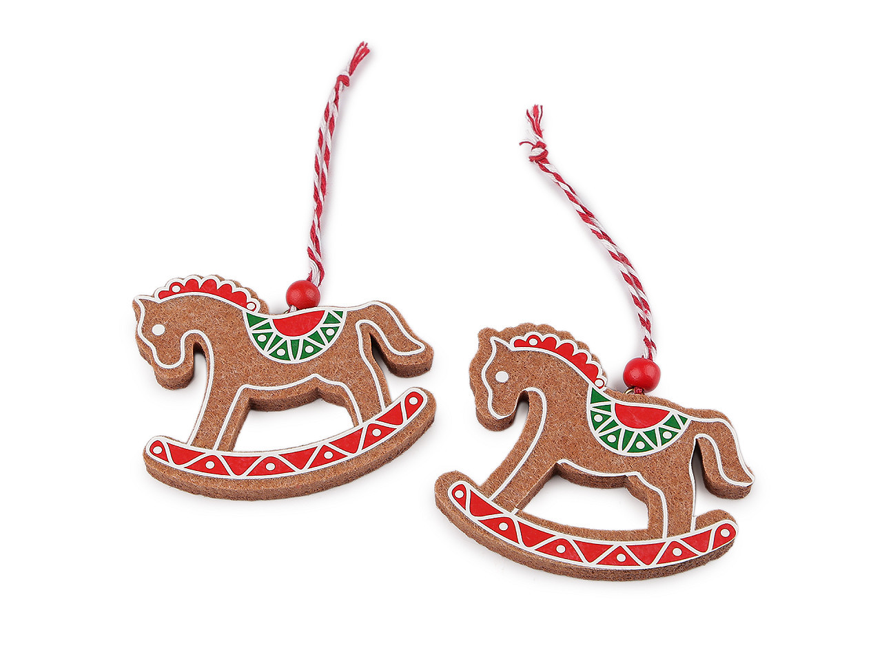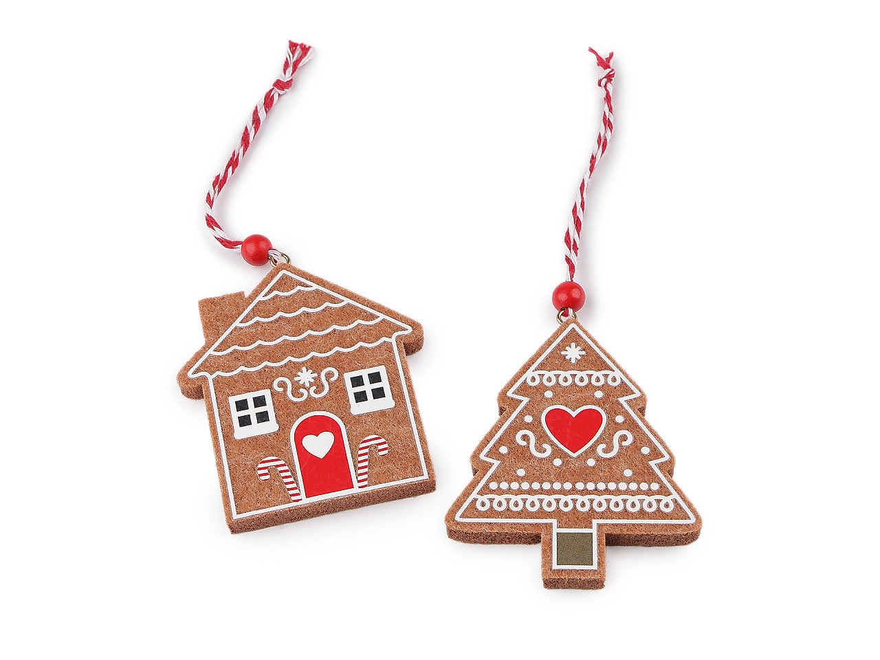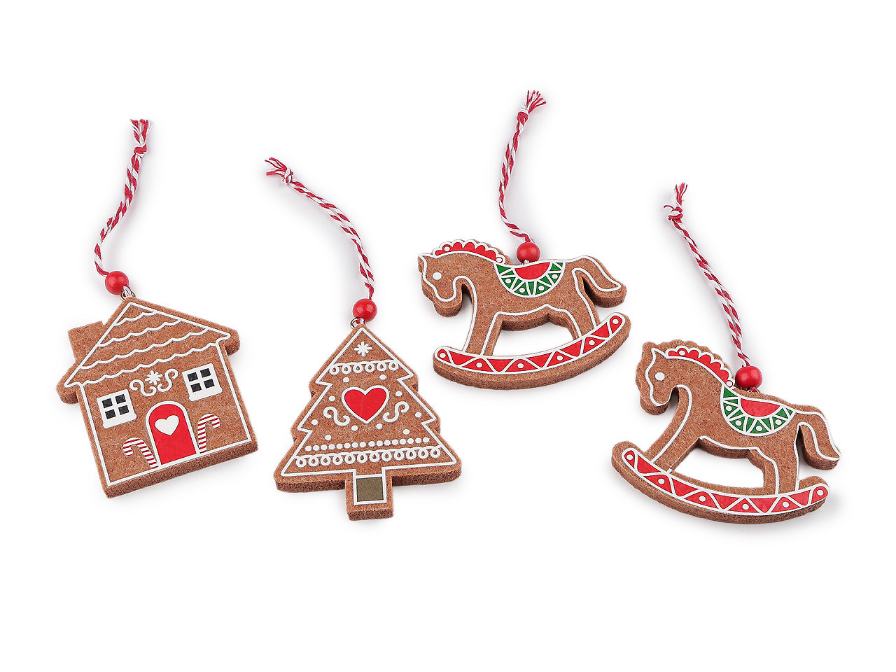 Ozdobte svůj domov kouzelnými vánočními filcovými perníčky k zavěšení – koník, stromeček a domeček. Tyto dekorativní perníčky z pevného filcu vynikají barevným dekorem a hravými detaily, které dodají vašemu vánočnímu stromečku, věnci nebo zdi jedinečnou atmosféru. Díky praktickému poutku je zavěšení snadné a rychlé. Jednostranné zdobení zajišťuje krásný vzhled zepředu, zatímco lehká konstrukce nezatěžuje větvičky. Vyberte si originální ozdoby, které jsou odolné, bezpečné a přinesou do vašeho interiéru veselou sváteční náladu.