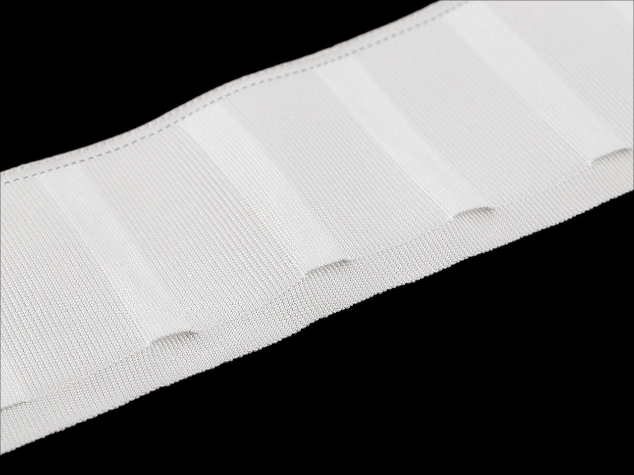 Řasící stuha na závěsy s poutky na kovové háčky je ideálním řešením pro zavěšení těžších závěsů a záclon. Díky své pevnosti a pravidelně rozmístěným poutkům (každých 25 mm, celkem 29 poutek na 1 metr) zajišťuje dokonalé a esteticky vyvážené řasení. Stuha je vhodná zejména pro závěsy z těžších materiálů, kde potřebujete spolehlivé upevnění a elegantní vzhled. Výhody produktu: vysoká pevnost, snadná instalace na kovové háčky, pravidelné a rovnoměrné řasení, vhodná pro těžké látky. Zvolte tuto řasící stuhu a dodejte svým oknům profesionální a stylový vzhled.