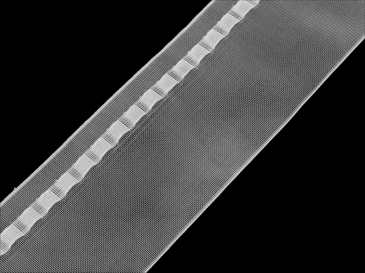 Záclonovka s pravidelnými poutky pro snadné a rychlé zavěšení záclon. Každý metr této kvalitní záclonovky obsahuje 63 pevných poutek s rozestupy pouze 5 mm, což zajišťuje rovnoměrné nařasení a elegantní vzhled vašich záclon. Díky hustému rozmístění poutek je instalace velmi jednoduchá – stačí pouze zaháknout háčky a záclonu můžete okamžitě pověsit. Tato záclonovka je ideální volbou pro každého, kdo hledá praktické, rychlé a estetické řešení zavěšení záclon.