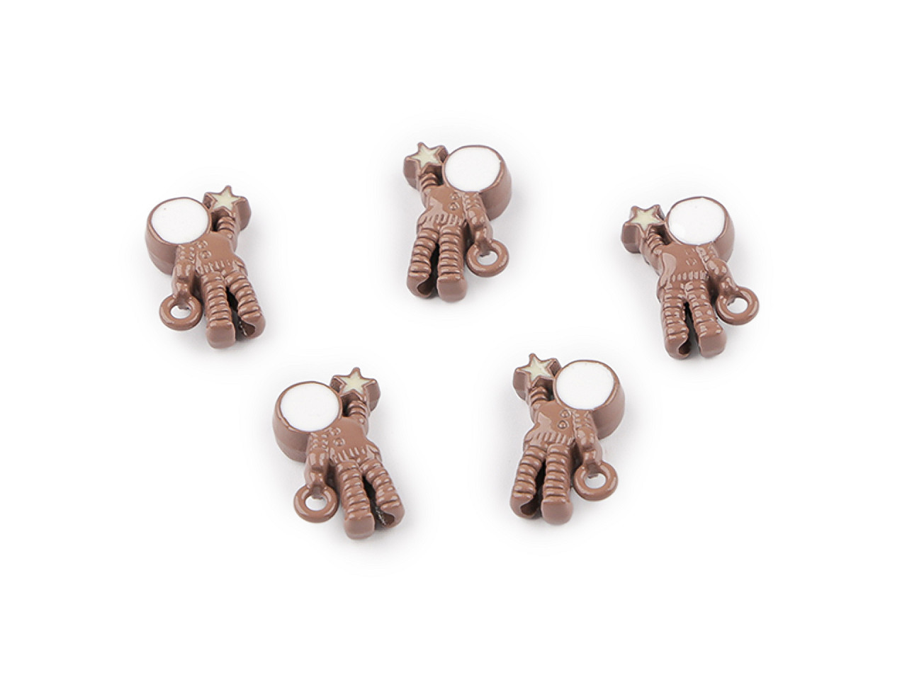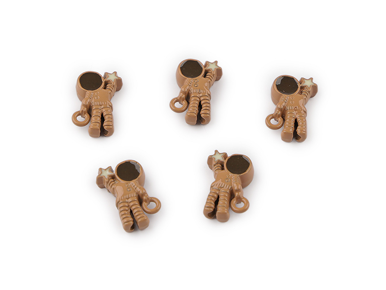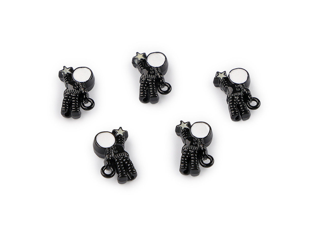 Originální kovový přívěsek korálek kosmonaut je stylový doplněk pro všechny kreativce. Díky preciznímu zpracování a povrchovému laku se jemně leskne a působí luxusním dojmem. Praktický průvlek středem těla umožňuje navlékání jako klasický korálek, takže jednotliví kosmonauti se řadí nad sebe – ideální pro tvorbu jedinečných šperků, jako jsou náušnice, náramky či náhrdelníky.