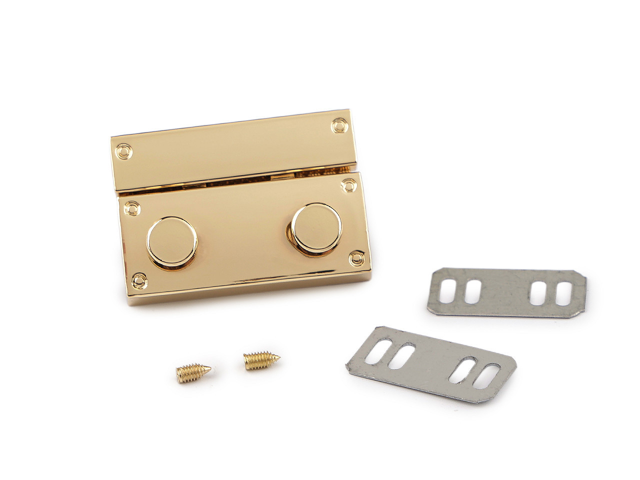 Elegantní sada kovového zapínání na tašku je ideálním řešením pro stylovou úpravu vašich kabelek, tašek i batohů s klopou. Designové zapínání nejen prakticky chrání vaše osobní věci, ale zároveň je ozdobou každého módního doplňku. Snadné otevírání posunutím knoflíku zajišťuje pohodlné používání v každodenním provozu. Horní díl zapínání jednoduše připevníte pomocí přiložených šroubků, spodní díl pak upevníte nožičkami a zajistíte plíšky z vnitřní strany. Sada obsahuje 2 kusy kovového zapínání, 2 šroubky a 2 plíšky, což umožňuje rychlou a bezpečnou montáž bez potřeby speciálního nářadí.