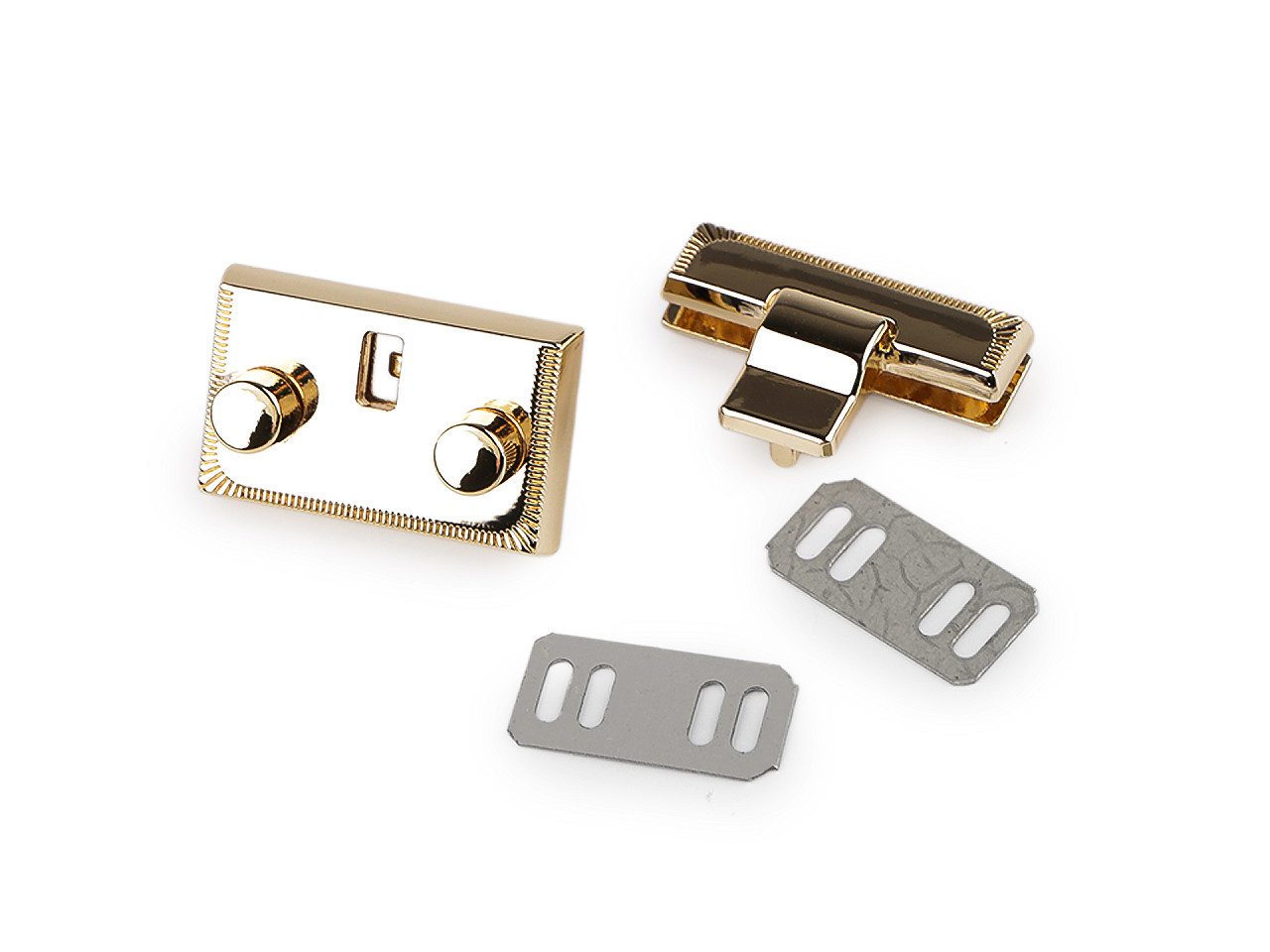 Sada zapínání na tašku je ideálním doplňkem pro výrobu i opravu tašek, kabelek a elegantních batohů s klopou. Zdobené kovové zapínání dodá vašim výrobkům luxusní vzhled a zároveň zajistí bezpečné uzavření. Otevírání je jednoduché – stačí posunout knoflík. Horní díl zapínání se snadno připevní pomocí přiložených šroubků, spodní díl pak upevníte praktickými nožičkami, které se zajišťují plíšky zevnitř. Sada obsahuje 2 kusy kovového zapínání, 2 šroubky a 2 plíšky. Výhody produktu: snadná instalace bez nutnosti speciálního nářadí, kvalitní kovový materiál pro dlouhou životnost, elegantní design vhodný pro různé typy tašek. Vylepšete své výrobky spolehlivým a stylovým zapínáním.