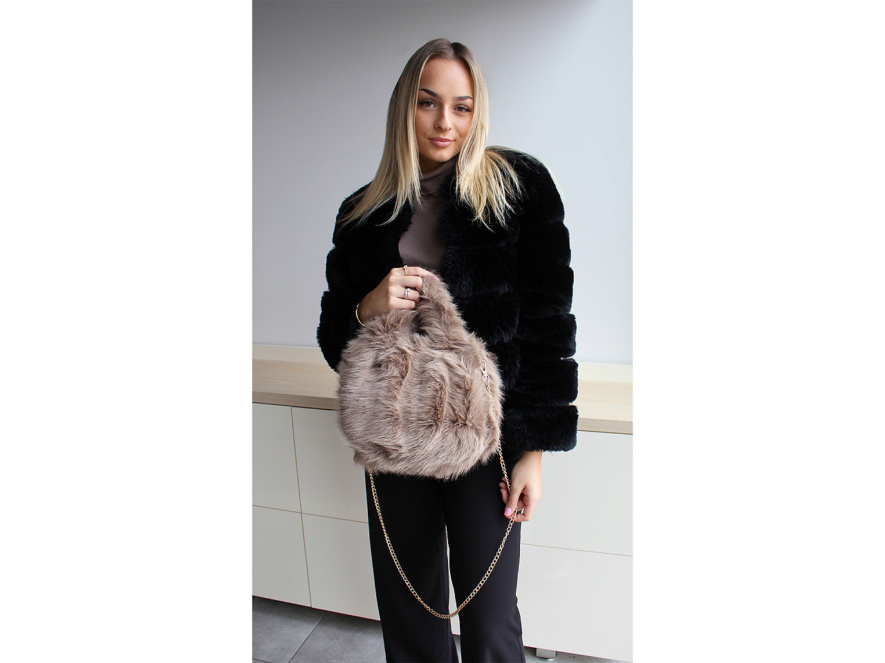 Kožešinová kabelka z umělé kožešiny je stylový a moderní doplněk, který podtrhne každý váš outfit. Díky prostornému vnitřku, kvalitní koženkové podšívce a praktickému uzavírání na zip nabízí kabelka dostatek místa pro vaše nezbytnosti. Vybrat si můžete z variant s dvěma uchy do ruky nebo s jedním měkkým uchem potaženým koženkou. Součástí každé kabelky je odnímatelný řetízek na karabiny, díky kterému ji snadno proměníte na crossbody a budete ji nosit pohodlně přes rameno či do kříže. Kabelka je nejen elegantní, ale zároveň velmi praktická a pohodlná na nošení. Umělá kožešina dodává kabelce luxusní vzhled a je vhodná pro každou příležitost – do práce, na schůzku, večírek i běžné denní nošení.