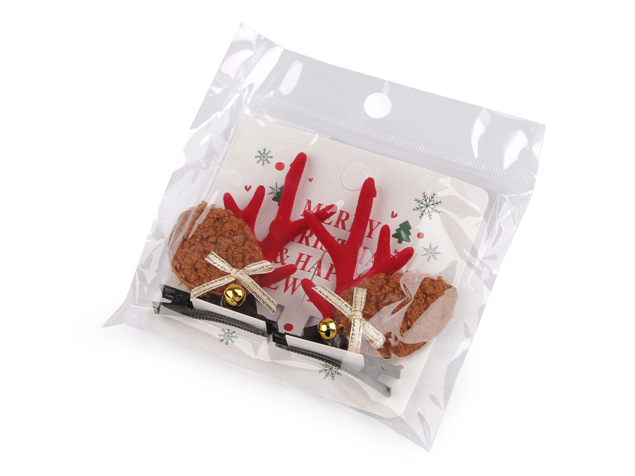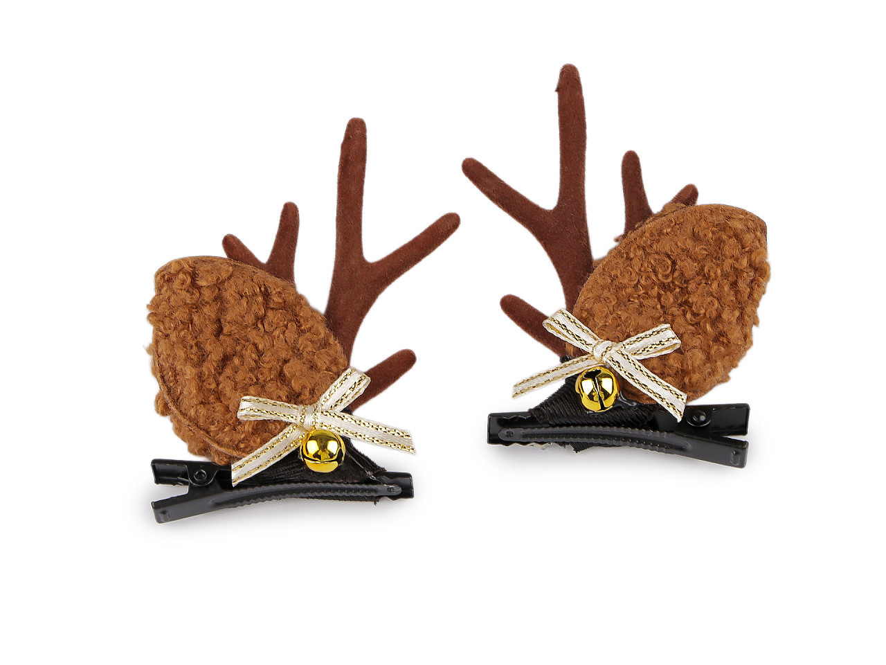 Vánoční párty sponky do vlasů se sobími parůžky a oušky jsou originálním doplňkem pro malé i velké slečny. Ozdobené mašličkou s lurexem a mini rolničkou, přinášejí do každého účesu hravost a slavnostní náladu. Pevné parůžky potažené imitací semiše zaručují dlouhou životnost, zatímco spony se zoubky perfektně drží ve vlasech. Sponky lze využít nejen jako stylový vánoční doplněk do vlasů, ale také k ozdobení tašky nebo jako zimní dekoraci. Užijte si originální vzhled na vánočních večírcích i při každodenním nošení.