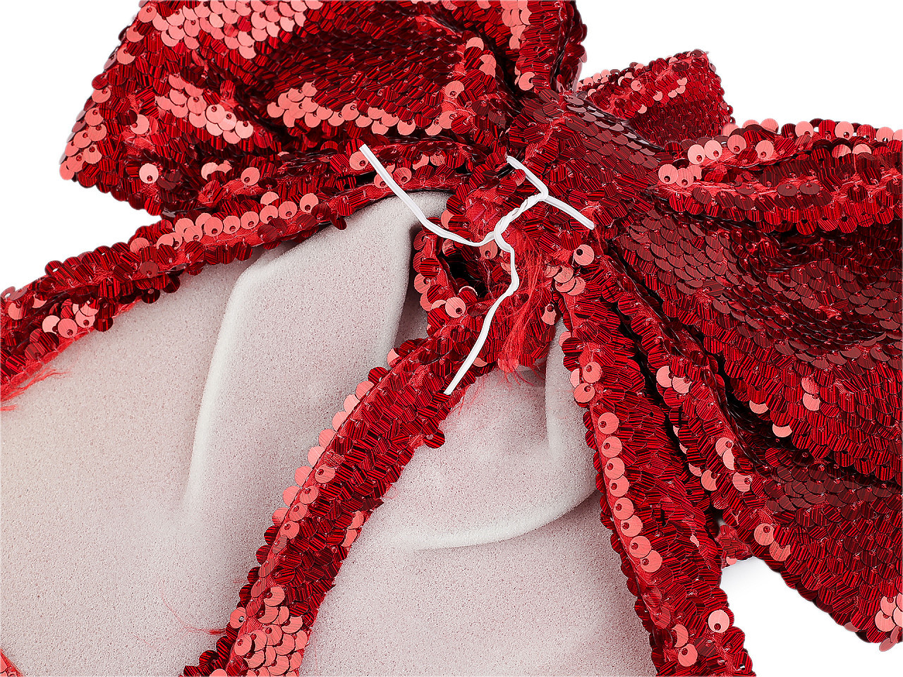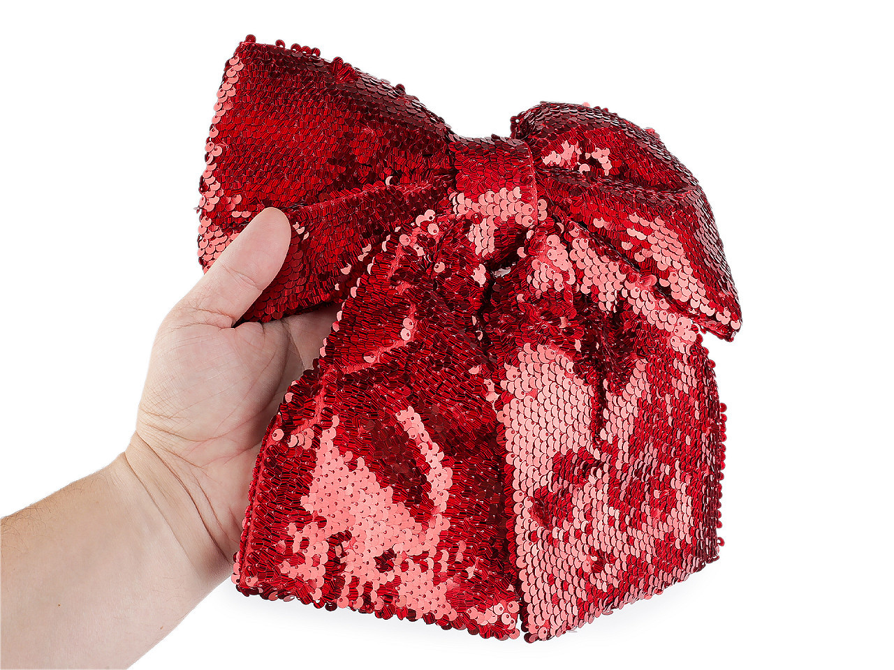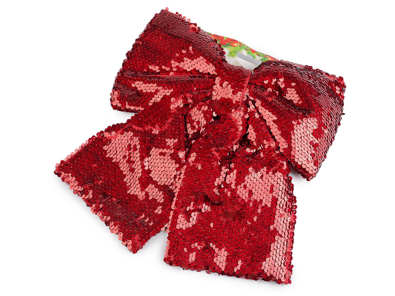 Vánoční mašle flitrová XL – dokonalý doplněk pro sváteční výzdobu. Díky třpytivým flitrům a výrazné velikosti vytvoří elegantní a slavnostní atmosféru. Ideální na ozdobení vánočního stromku, dekoračních věnců, dveří, židlí či velkých dárků. Snadné upevnění zajišťuje praktický drátek součástí balení.