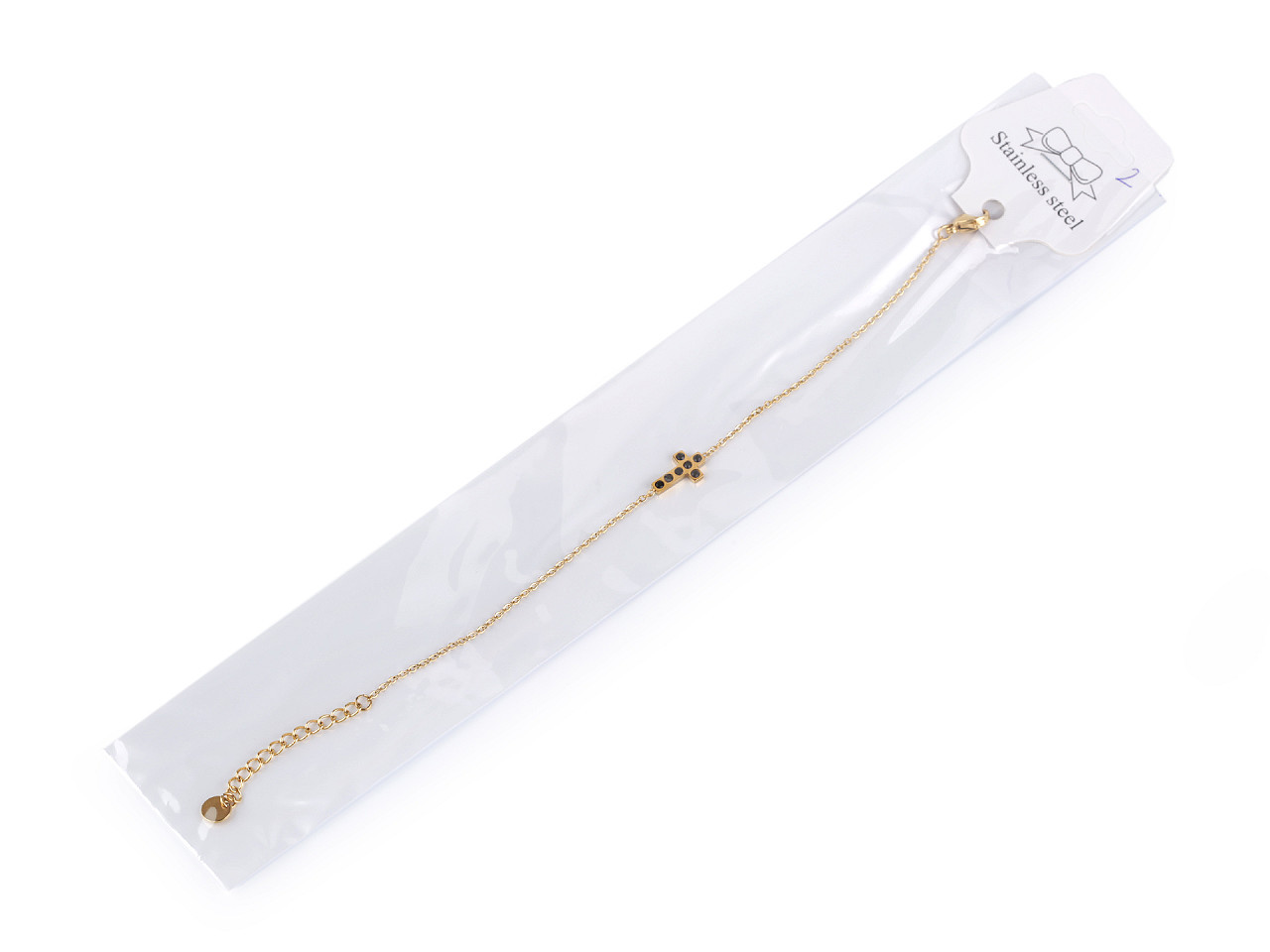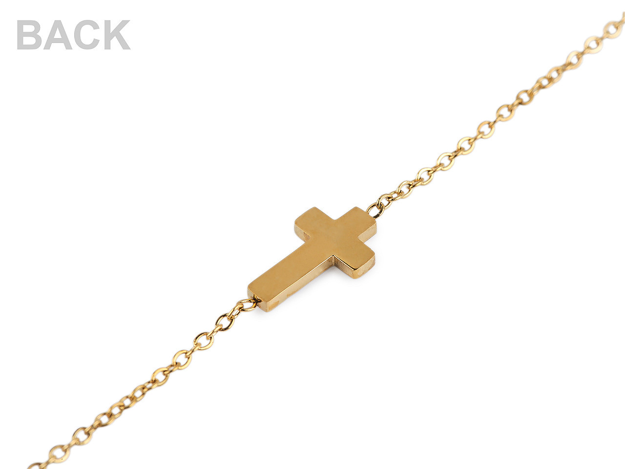 Elegantní náramek z nerezové oceli s křížkem zdobeným broušenými kamínky je stylovým doplňkem, který dokonale podtrhne váš outfit. Díky nastavitelnému zapínání na karabinku se pohodlně přizpůsobí každému zápěstí. Vyrobený z kvalitní nerezové oceli, odolné proti poškrábání, korozi i vlhkosti, je ideální pro každodenní nošení i pro osoby s citlivou pokožkou. Minimalistický design s jemným leskem kamínků dodá šperku nadčasový vzhled, který nikdy nevyjde z módy. Křížek má velikost přibližně 8 mm na šířku a 13 mm na výšku.