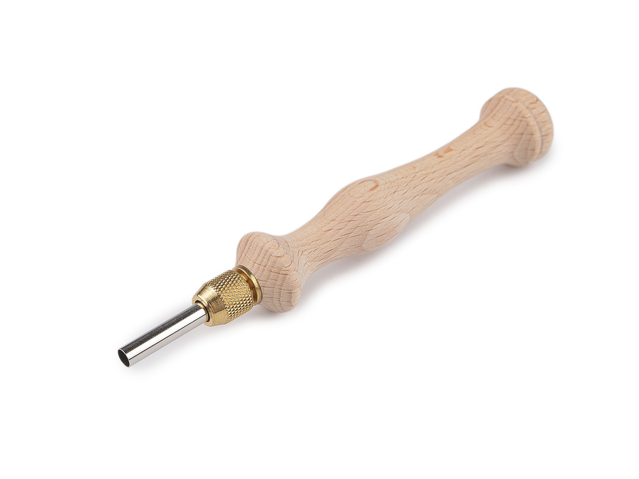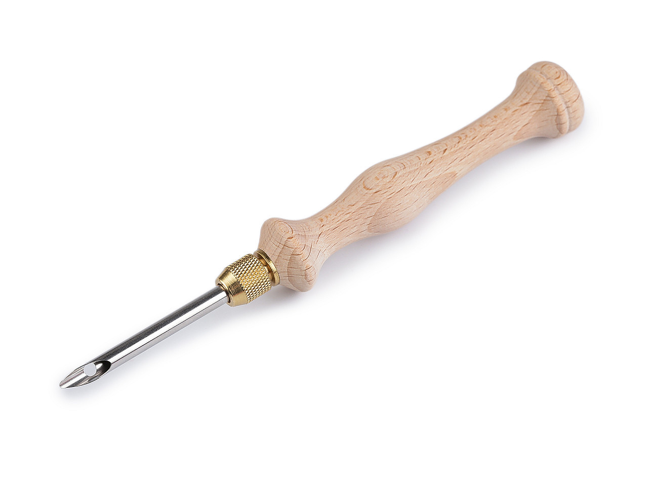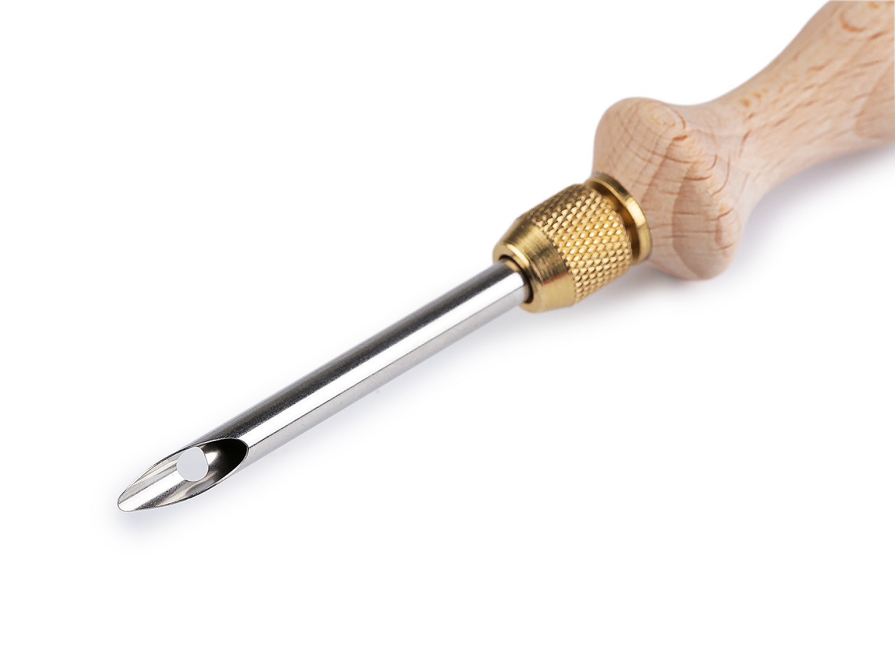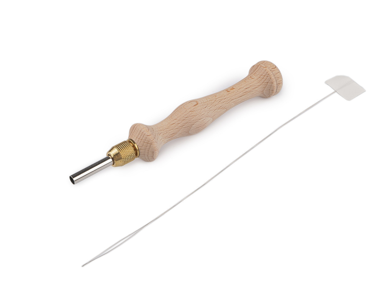 Dutá šroubovací vyšívací jehla AIRO Ø5 mm je ideální nástroj pro kreativní tvoření se silnější přízí. Díky robustnímu hrotu je perfektní pro zdobení svetrů, šálů či jiných pletených výrobků. Vyšívání s touto jehlou je rychlé, jednoduché a nevyžaduje složité provlékání – stačí pouze vpichovat kolmo do látky. Příze se provléká dutým středem jehly, což umožňuje plynulou práci bez zbytečného namáhání materiálu. Rukojeť z nelakovaného dřeva zajišťuje pohodlný úchop a příjemný pocit při práci.