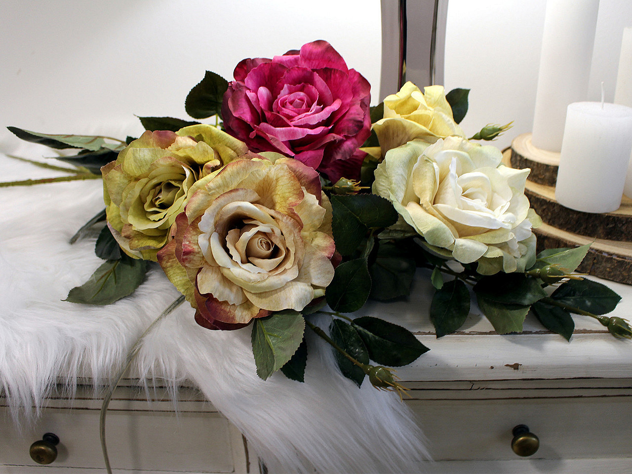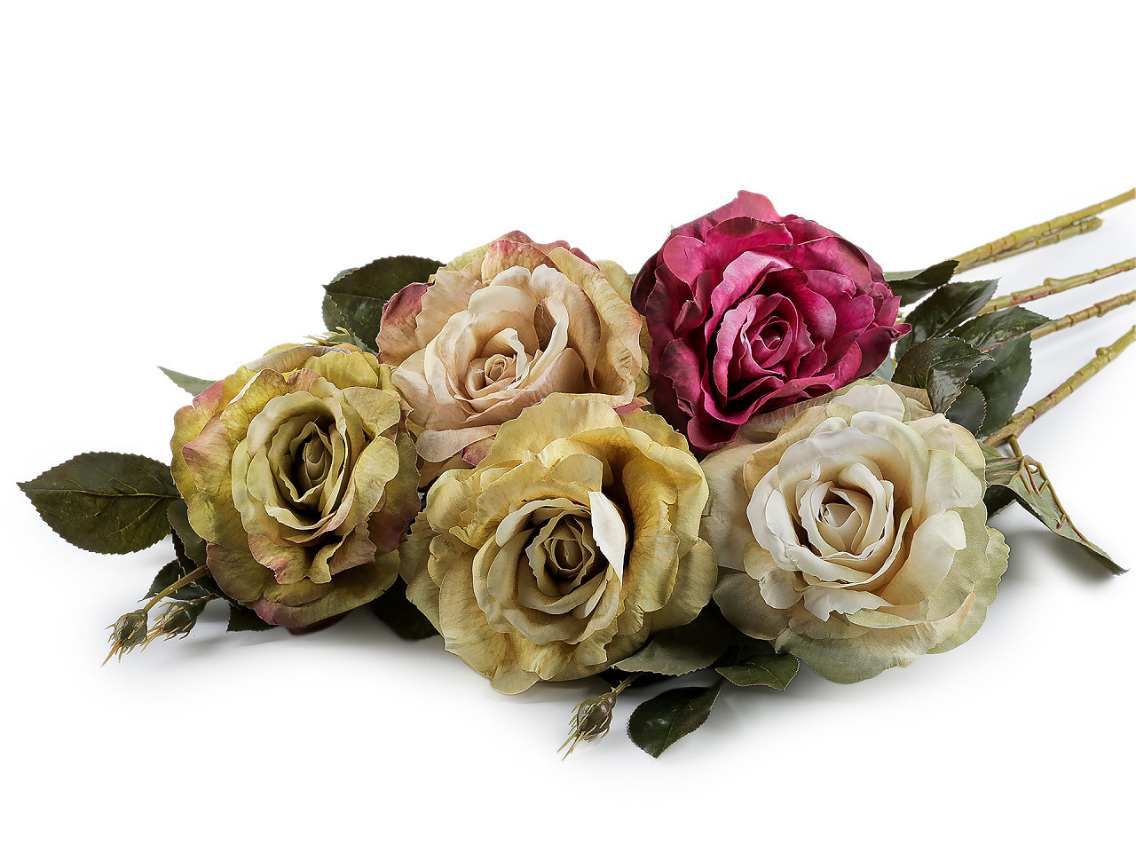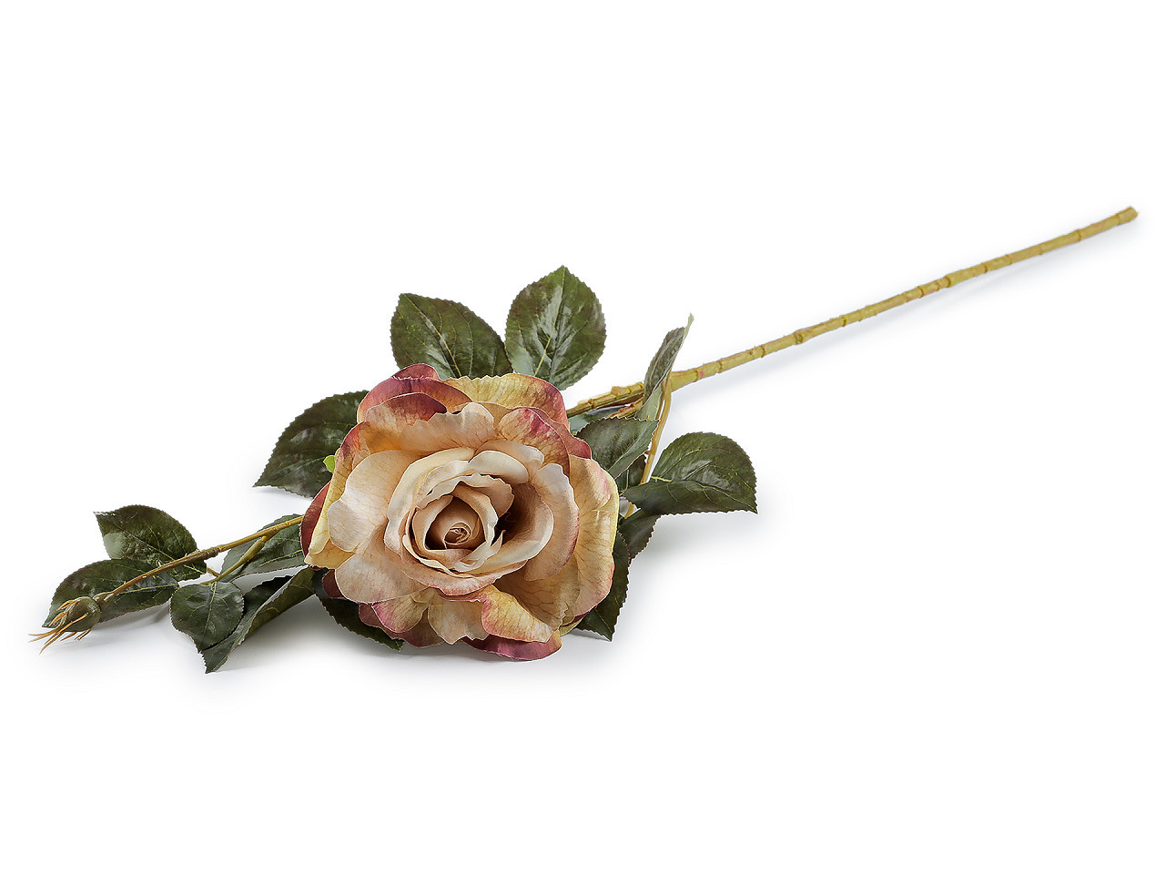 Elegantní umělá růže s realistickým vzhledem a jemně tónovaným zabarvením dodá vašemu interiéru nadčasový půvab. Díky precizně propracovaným detailům působí jako živá, přitom nevyžaduje žádnou údržbu. Ideální do vázy, dekorativních aranžmá či svatebních kytic. Ohebný stonek s drátkem uvnitř umožňuje snadné tvarování podle potřeby. Perfektní volba pro stylové a trvanlivé dekorace.
