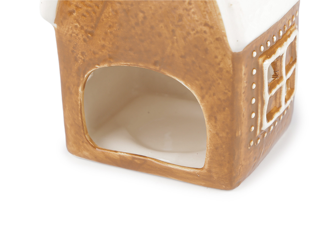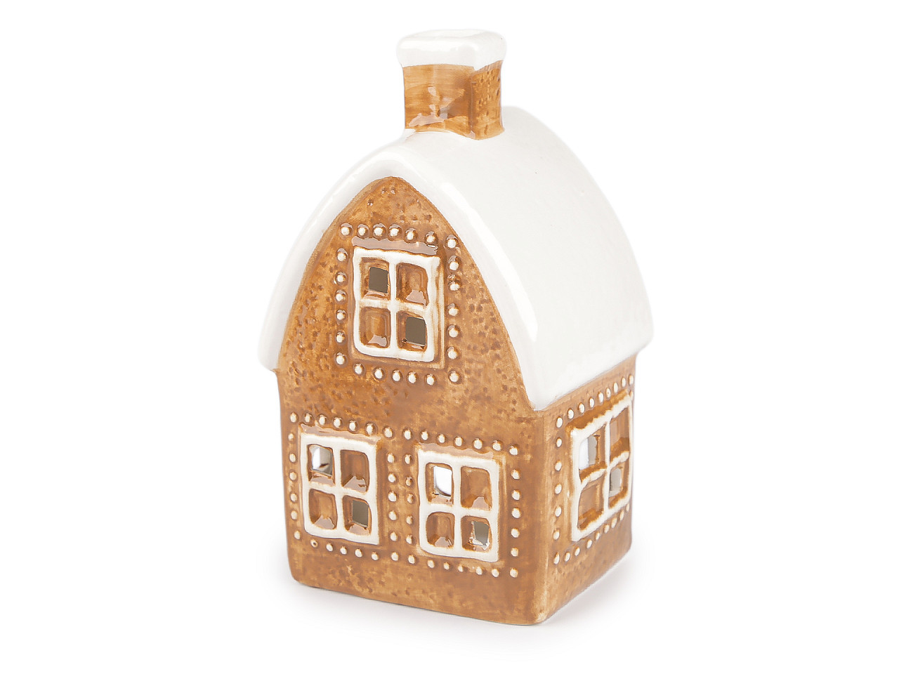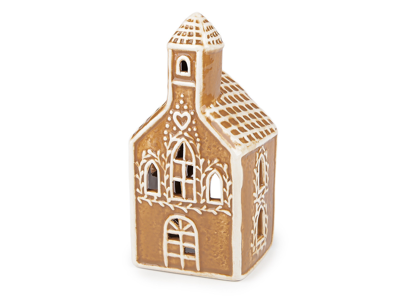 Keramický vánoční svícen – kostel z perníku na čajovou svíčku. Vytvořte si doma kouzelnou sváteční atmosféru s originálním keramickým svícnem ve tvaru kostela nebo chaloupky, který svým propracovaným designem připomíná tradiční vánoční perník. Tento dekorativní domeček je ideální pro klasické i LED čajové svíčky a stane se stylovou ozdobou vánočního stolu, okenního parapetu nebo součástí vašeho zimního aranžmá. Krásný detail, který vnese do interiéru hřejivé světlo a pohodu.