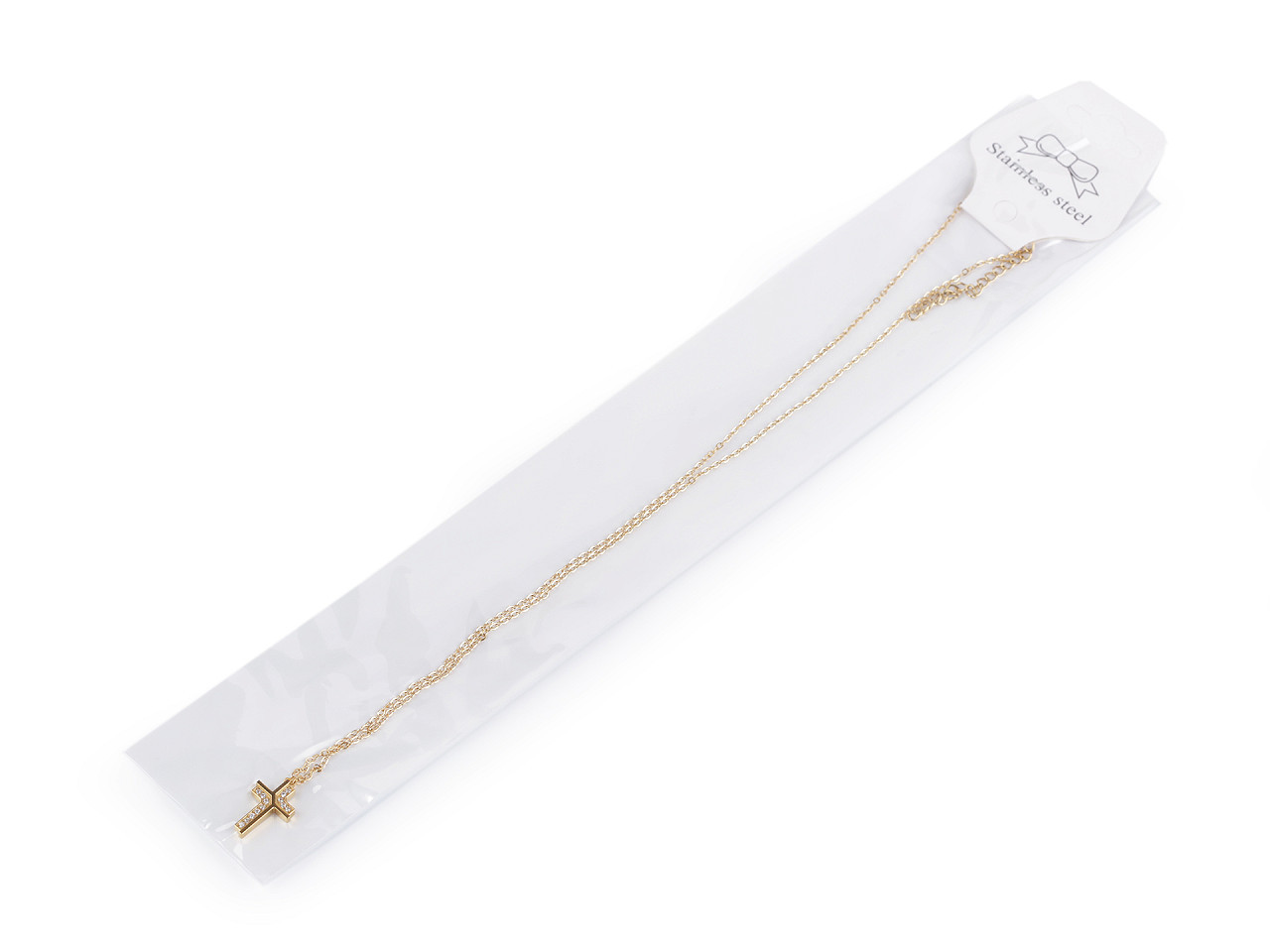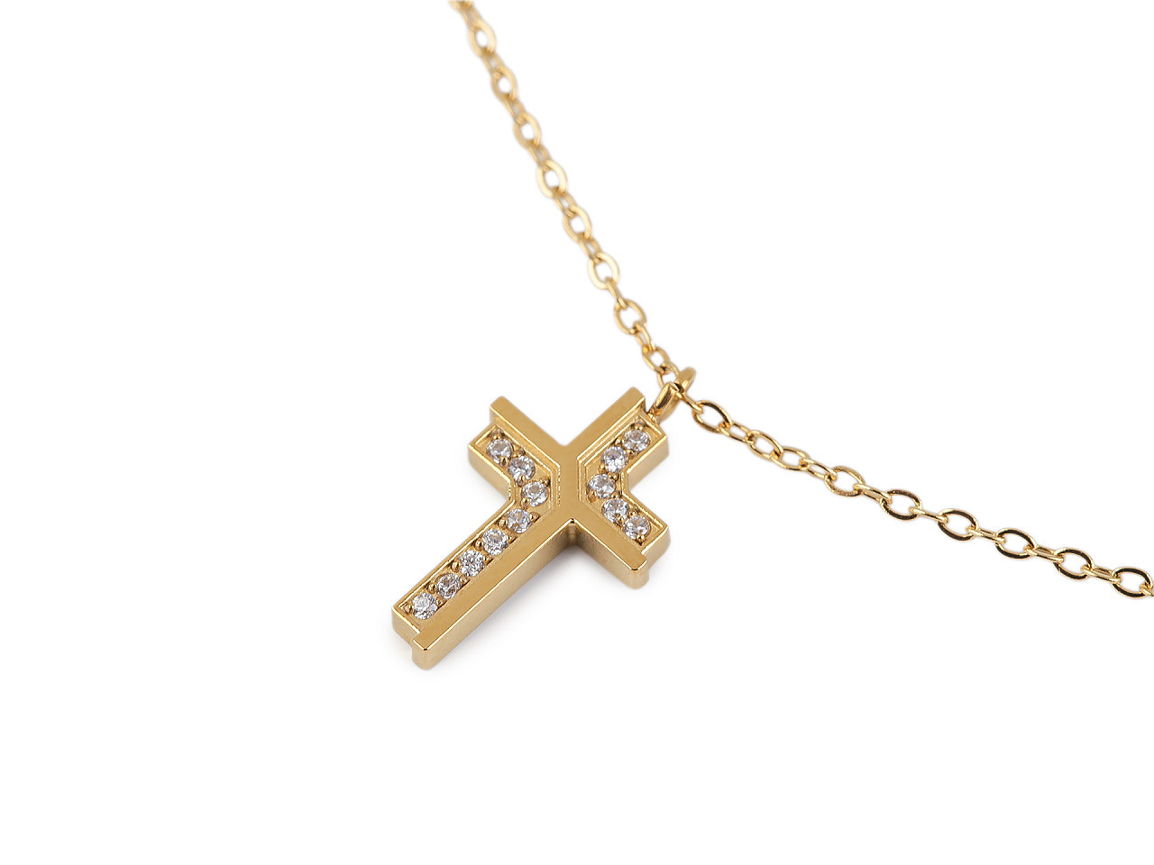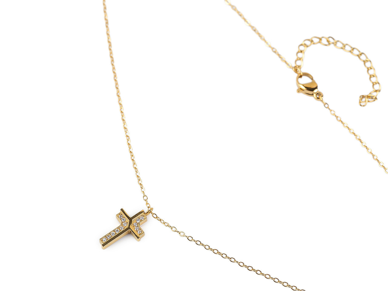 Elegantní náhrdelník s křížkem z nerezové oceli – odolný, hypoalergenní a stylový. Dodejte svému outfitu jemný a nadčasový akcent s elegantním náhrdelníkem s křížkem, ozdobeným precizně broušenými kamínky. Tento univerzální šperk se hodí jak pro každodenní nošení, tak pro slavnostní příležitosti. Díky zapínání na praktickou karabinku a adjustačnímu řetízku si délku snadno přizpůsobíte tak, aby dokonale seděla.