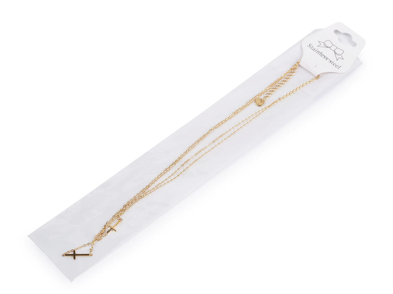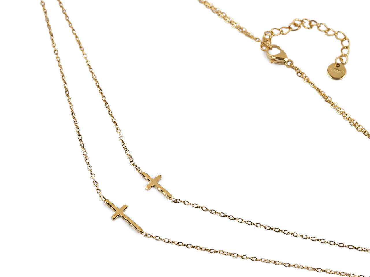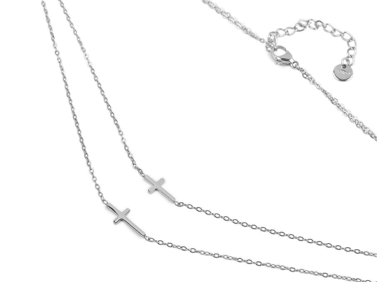 Elegantní dvojitý náhrdelník z nerezové oceli s křížky – styl a odolnost pro každý den. Dopřejte si nadčasový šperk, který kombinuje jemnou eleganci s dlouhou životností. Tento dvojitý náhrdelník s křížky z kvalitní nerezové oceli je perfektním doplňkem pro každodenní nošení i speciální příležitosti. Lesklý povrch podtrhuje luxusní vzhled, zatímco dva decentní křížky o rozměrech 6 × 12 mm a 6 × 15 mm dodávají šperku symbolický a módní nádech.