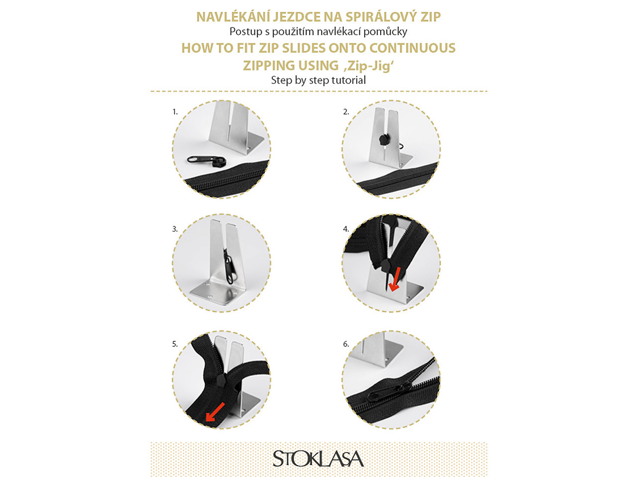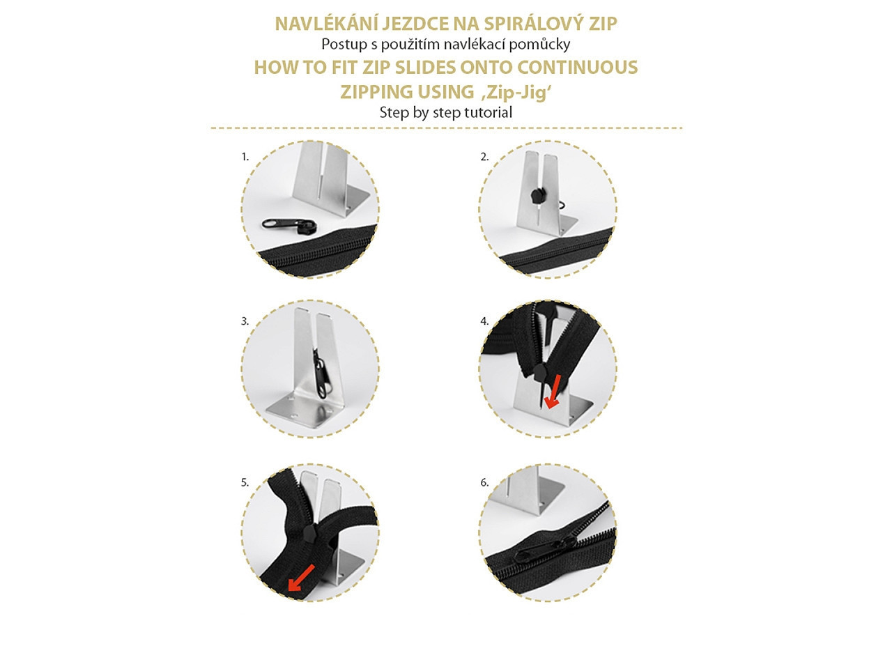 - Určeno pro spirálové zipy No. 3–10