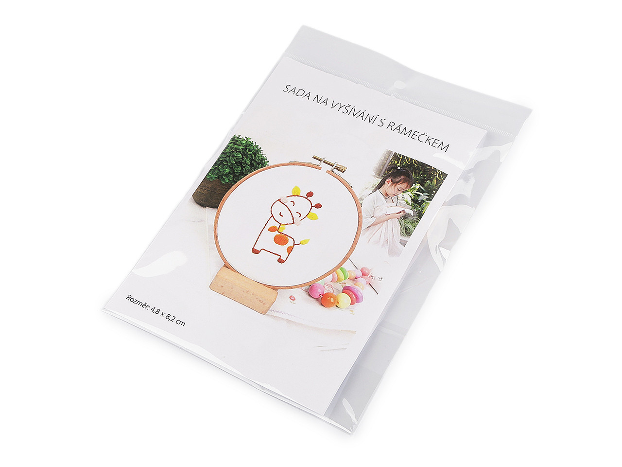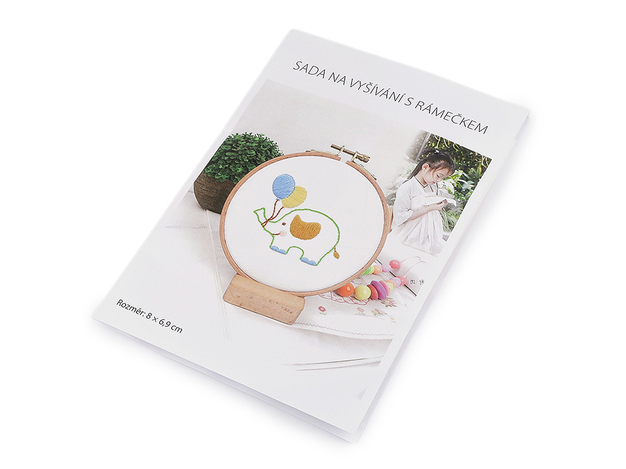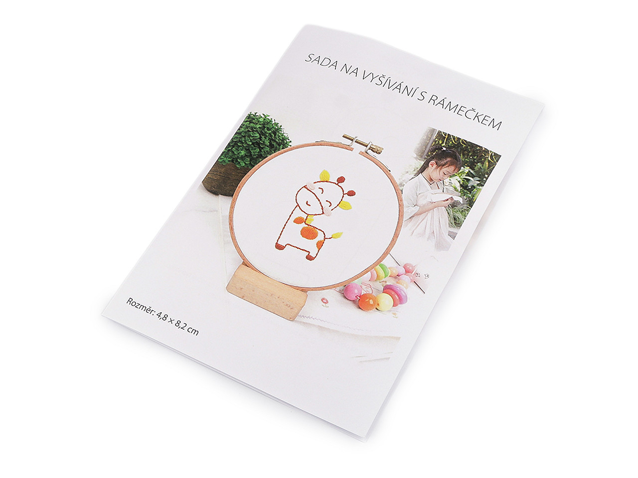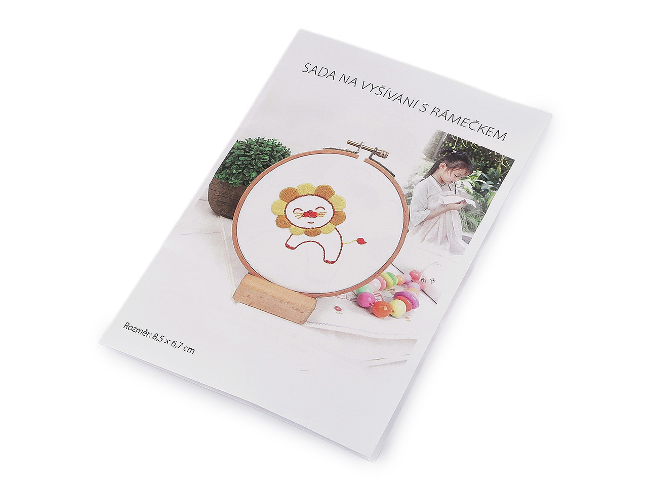 Tato kompletní sada obsahuje plastový vyšívací kruh o vnitřním průměru 11 cm, plátno s předtištěným motivem, kvalitní vyšívací příze mouline, jehly a podrobný návod.