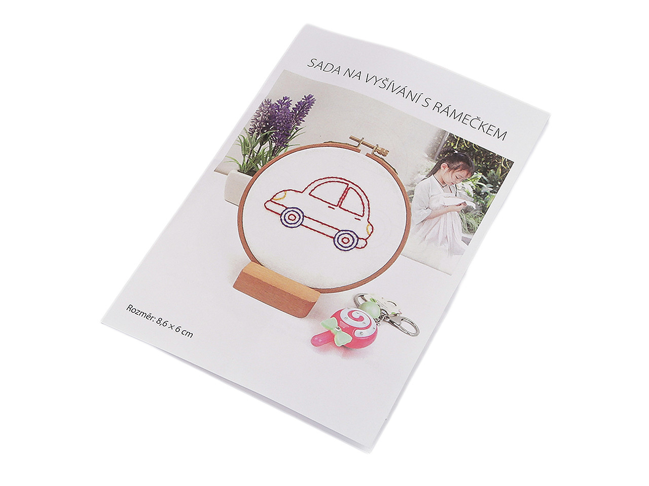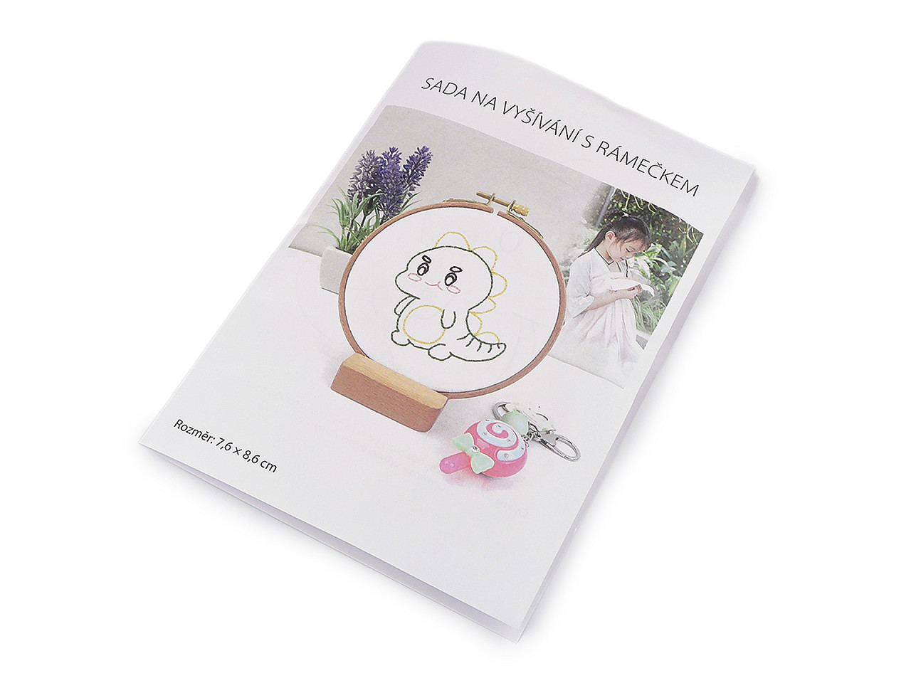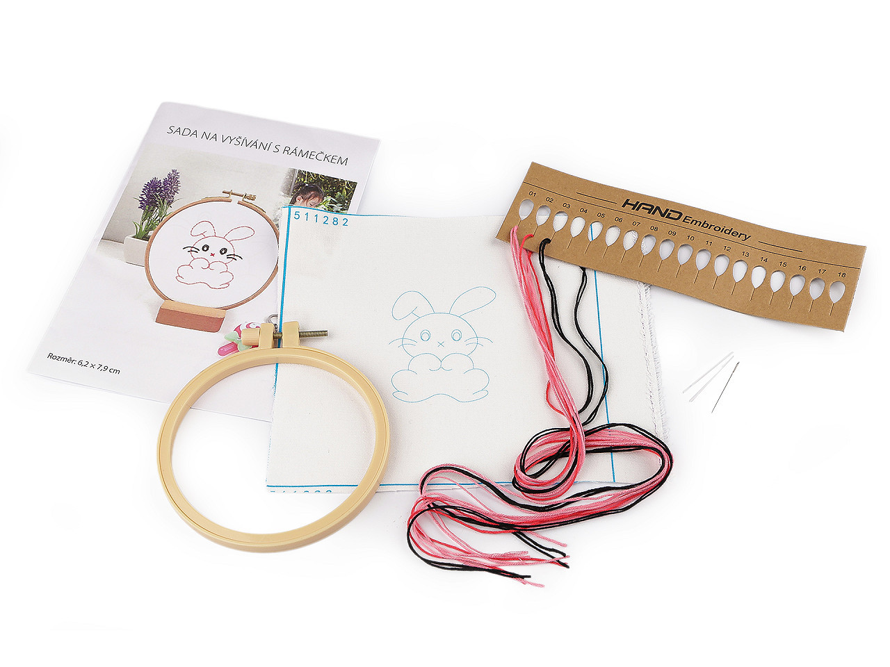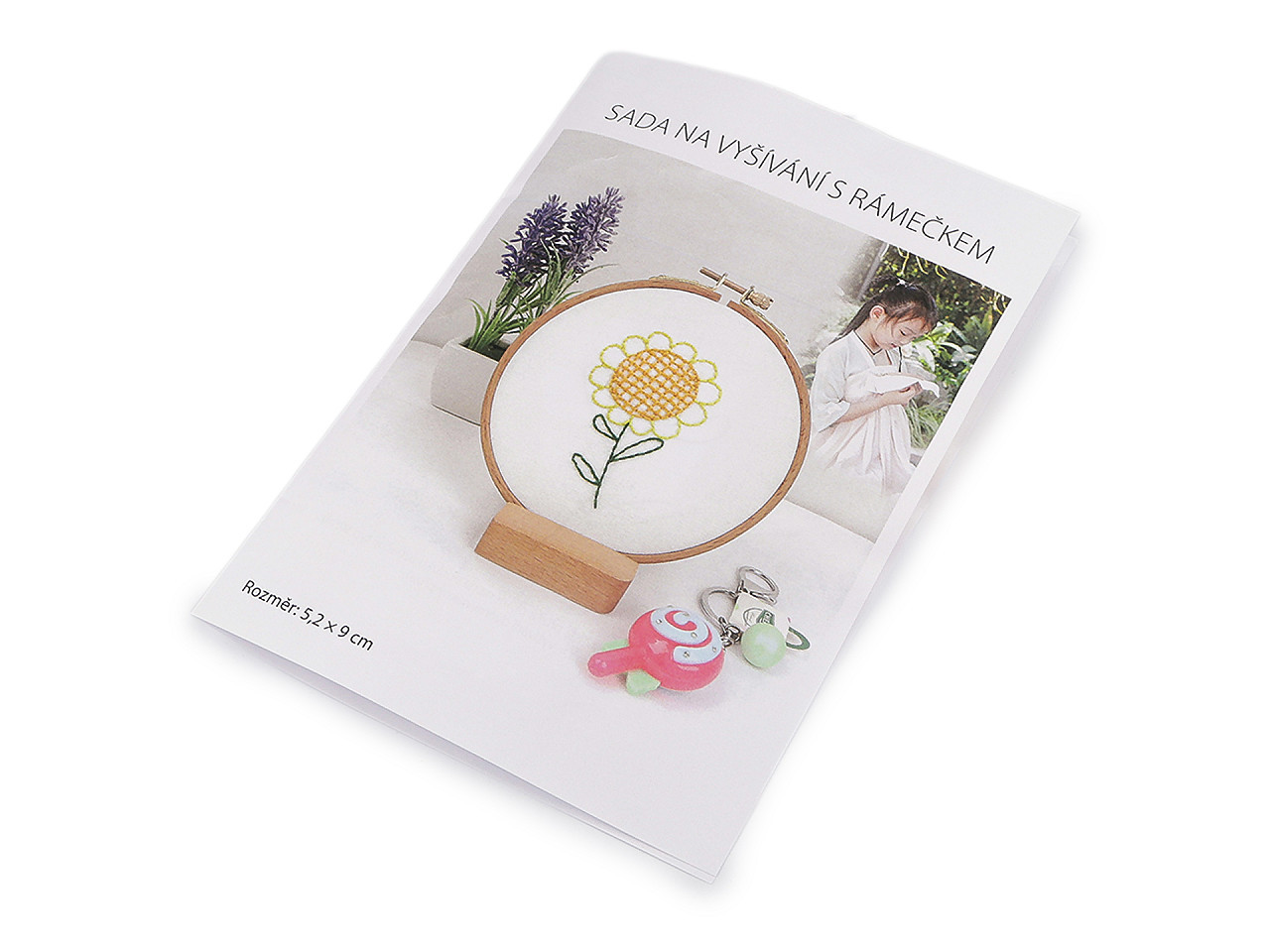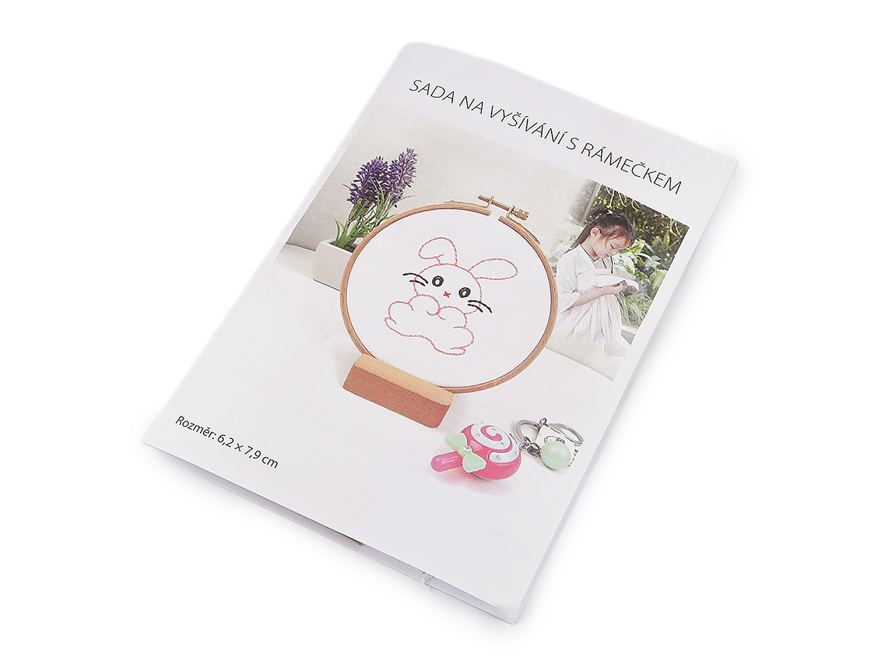 Tato kompletní sada obsahuje plastový vyšívací kruh o vnitřním průměru 11 cm, plátno s předtištěným motivem, kvalitní vyšívací příze mouline, jehly a podrobný návod.