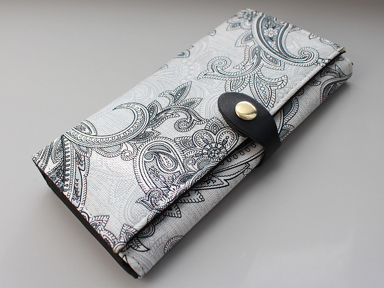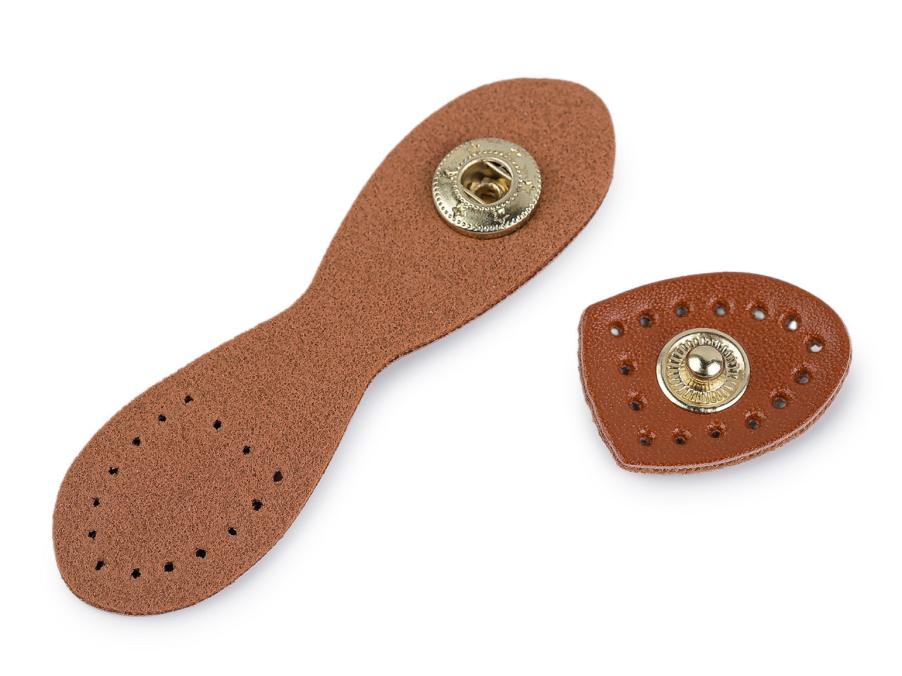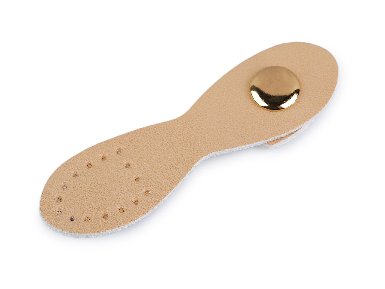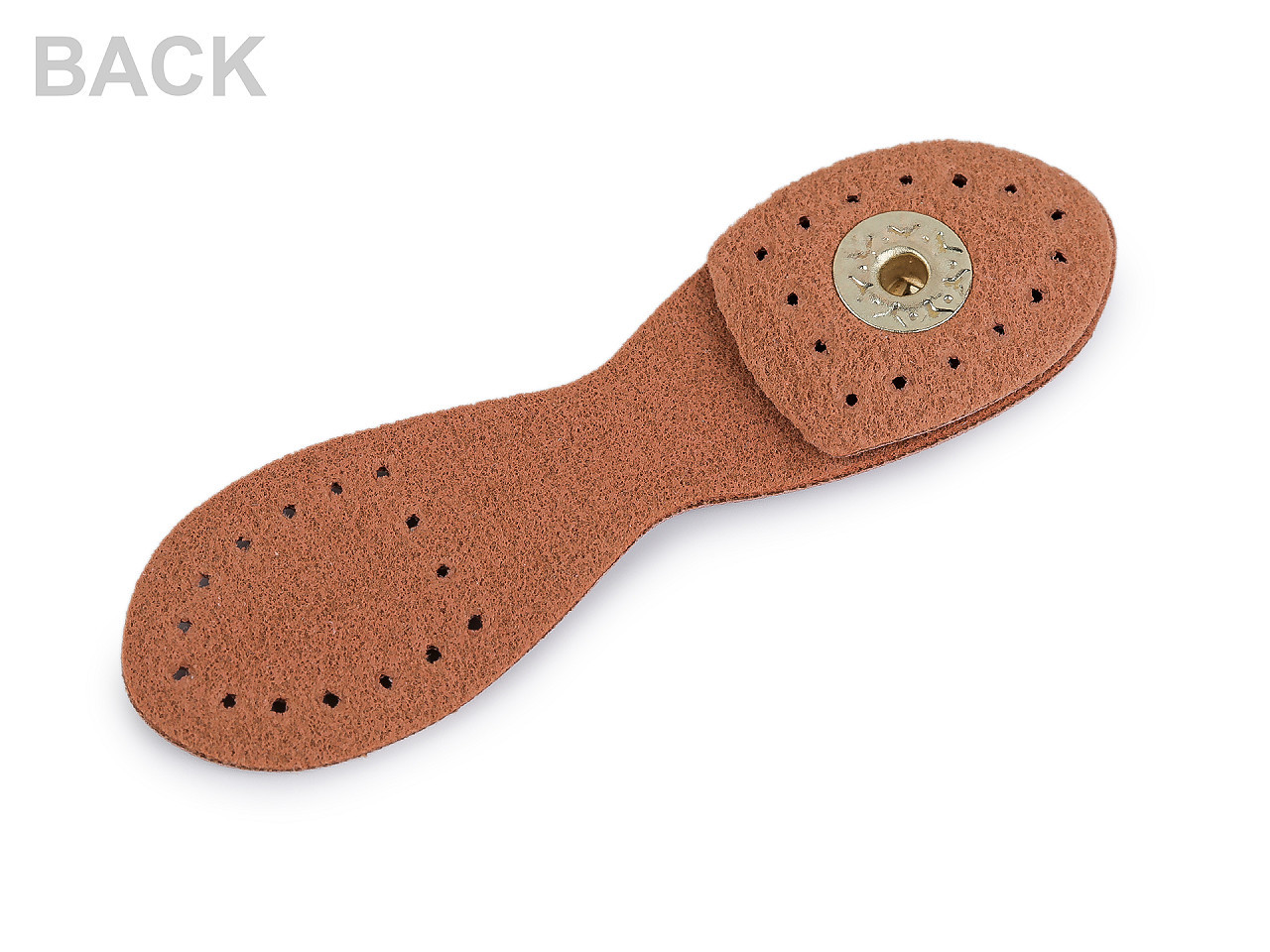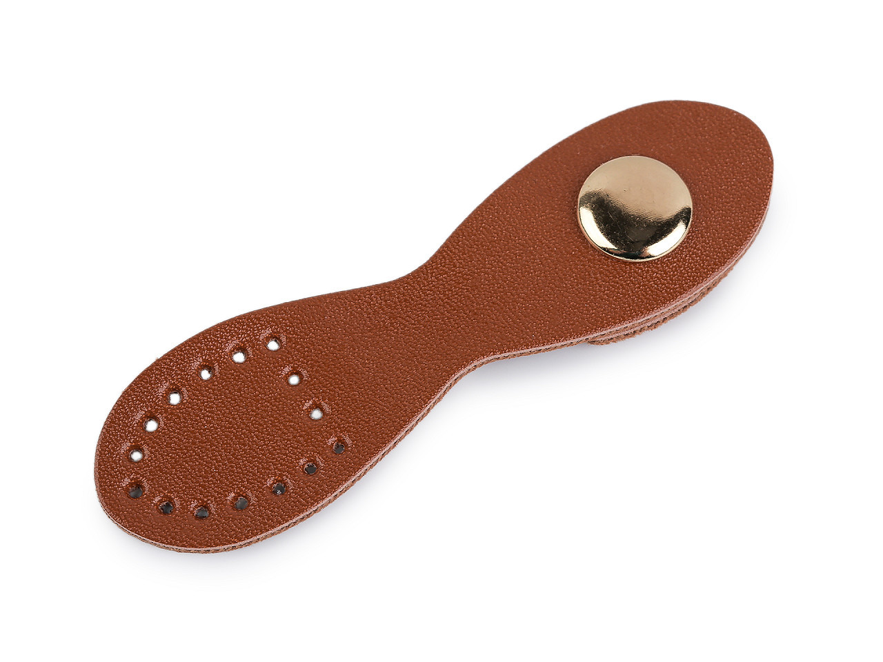 Elegantní zapínání z eko kůže pro výrobu tašek, kabelek a peněženek. Dodejte svým ručně vyráběným doplňkům profesionální vzhled s kvalitním zapínáním z eko kůže. Tento praktický komponent se skládá ze dvou částí, které jednoduše přišijete k podkladovému materiálu. Zapínání je opatřeno odolným kovovým drukem, který zaručuje snadné a bezpečné používání.