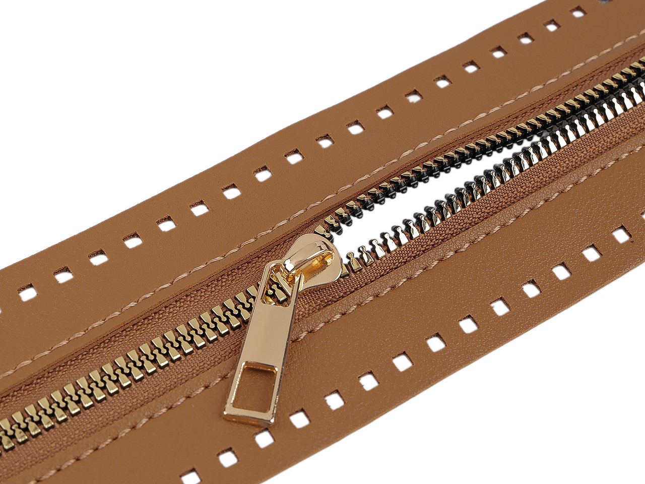 Zip z eko kůže pro kabelky, tašky a pouzdra. Praktický zip vsazený do kvalitního podkladu z eko kůže je ideální doplněk pro výrobu či opravu kabelek, tašek, pouzder i batohů. Díky univerzálnímu designu jej snadno využijete na šité, pletené i háčkované výrobky – ať už jako hlavní zapínání, nebo pro vnitřní a boční kapsy.