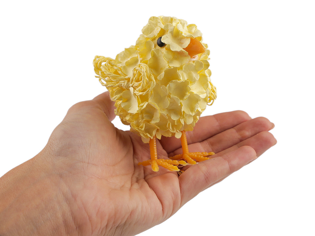 Velikonoční dekorační kuřátko – roztomilá jarní ozdoba. Vneste do svého domova kouzlo Velikonoc s naším originálním velikonočním kuřátkem. Tento jemný dekorativní doplněk je ideální pro jarní aranžmá, květináče, věnce nebo sváteční stůl. Základ tvoří lehký polystyren, který je pečlivě obalen drobnými papírovými květy, dodávajícími kuřátku jedinečný a veselý vzhled.