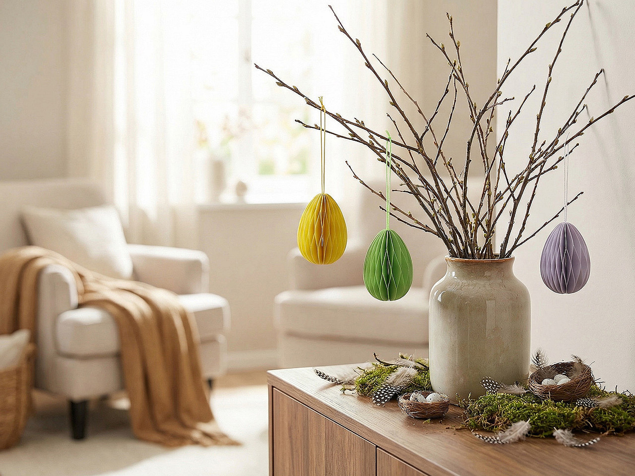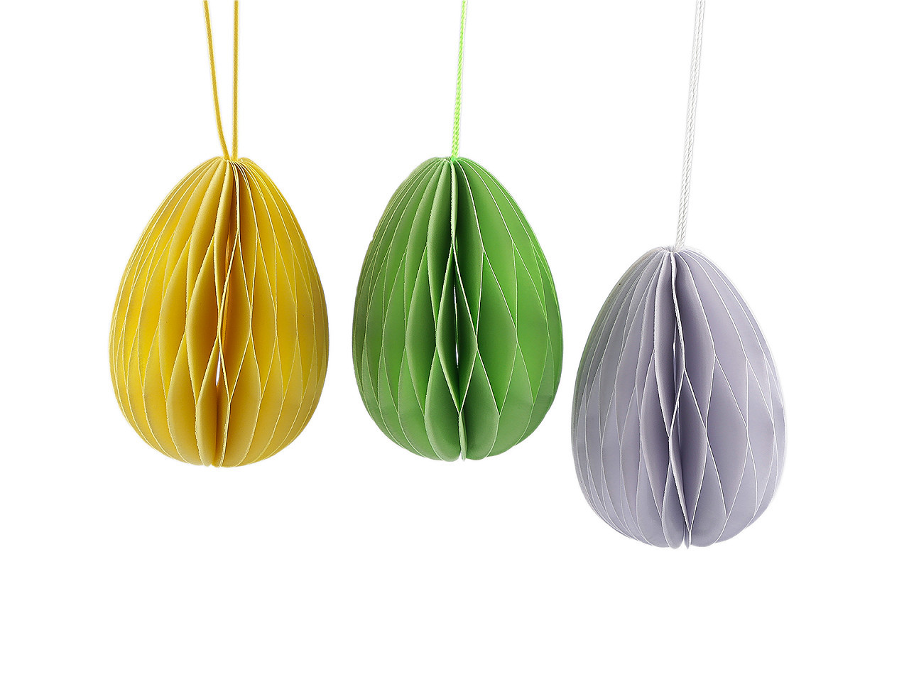 Papírové závěsné vajíčko s 3D plástvovým efektem – originální jarní dekorace. Oživte svou velikonoční nebo jarní výzdobu elegantním papírovým vajíčkem k zavěšení. Vyrobené z kvalitního plástvového papíru, který při rozložení vytváří působivý 3D efekt připomínající včelí plástve, dodá vašemu interiéru jedinečný šmrnc.