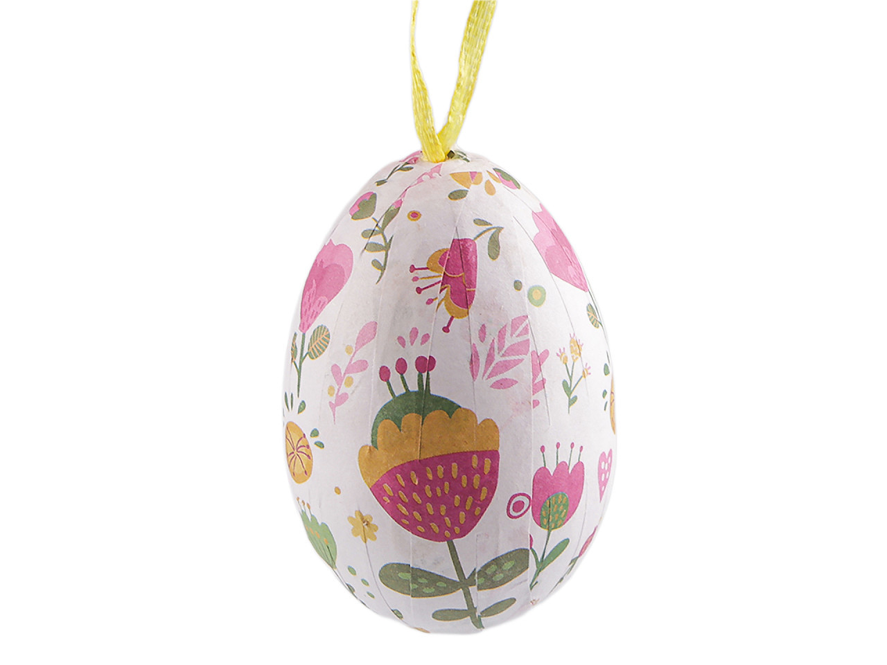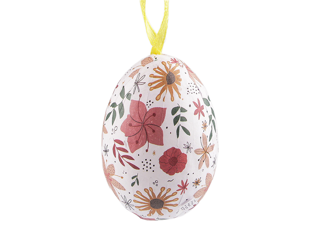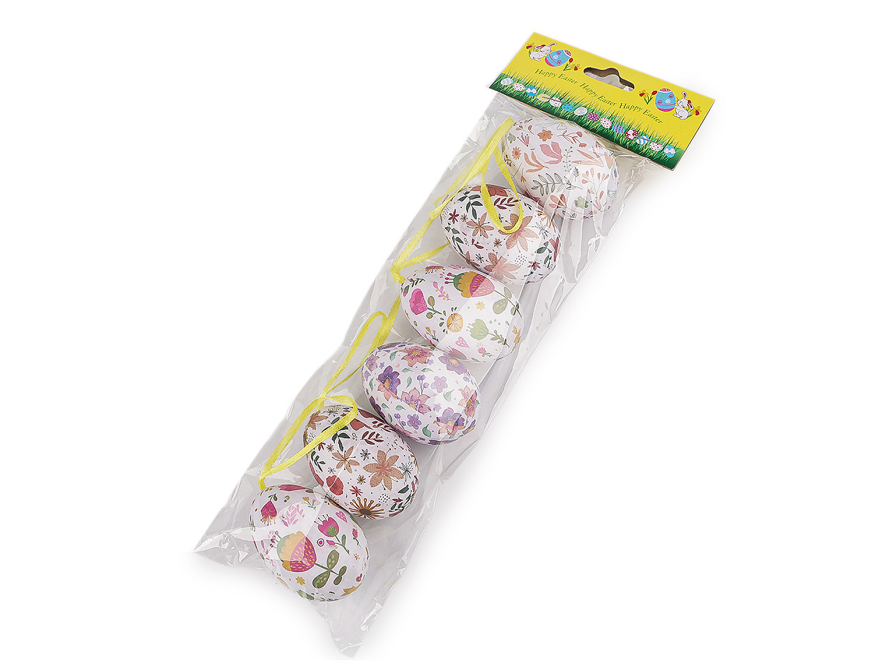 Velikonoční vajíčka k zavěšení – lehká dekorace s květinovým motivem. Ozdobte svůj domov originálními velikonočními vajíčky s jemnými květinovými vzory, která díky praktickému poutku snadno zavěsíte na větvičky ve váze, jarní věnce či do svátečních aranžmá. Základ z lehkého polystyrenu zajišťuje snadnou manipulaci i bezpečné použití. Ideální doplněk pro vaši velikonoční výzdobu, který vnese do interiéru svěžest a radost jarních svátků.