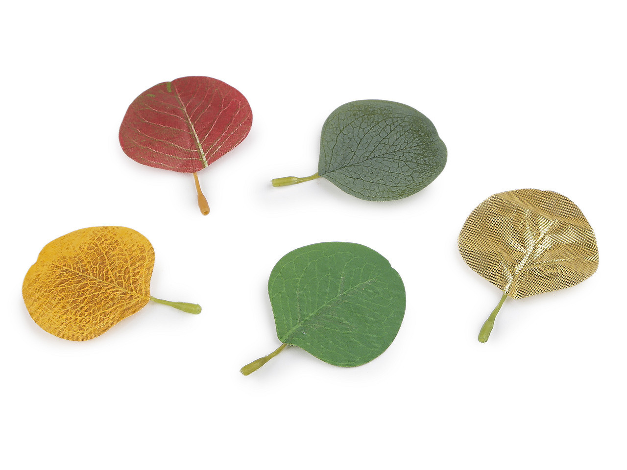 Umělý list eukalyptu – univerzální dekorace pro kreativní aranžování. Dodajte svým dekoracím šmrnc s realistickým umělým listem eukalyptu. Díky kvalitnímu provedení je ideální pro tvorbu květinových vazeb, věnců, svatebních ozdob, věnečků či originálních doplňků do vlasů. Plastový stonek umožňuje vložení floristického drátu o průměru cca 2 mm, což usnadňuje tvarování a upevnění v aranžích. Skvělá volba pro domácí i profesionální dekoratéry, kteří hledají trvanlivý a elegantní prvek do svých výtvorů.