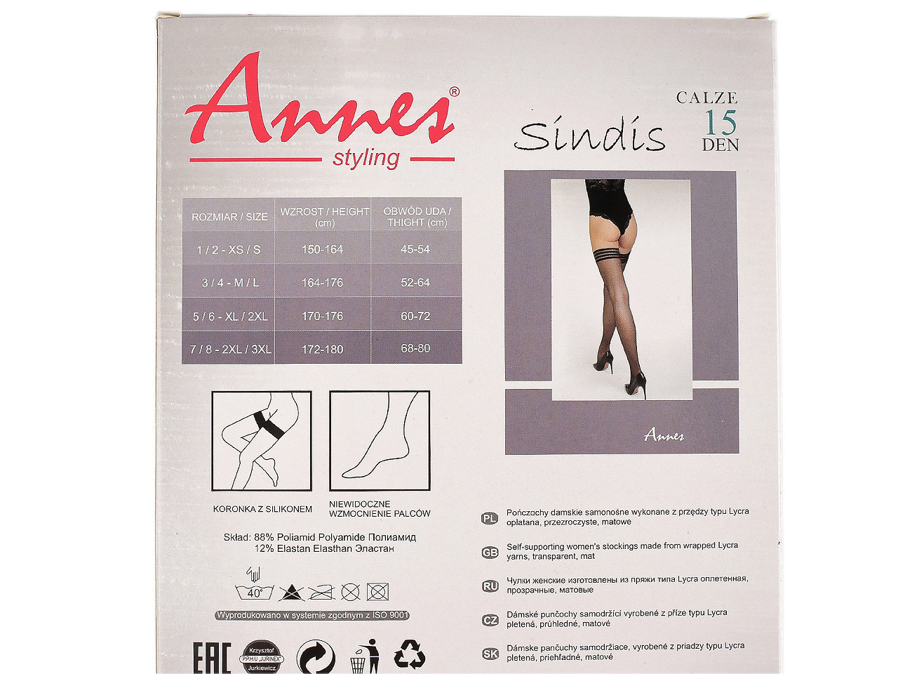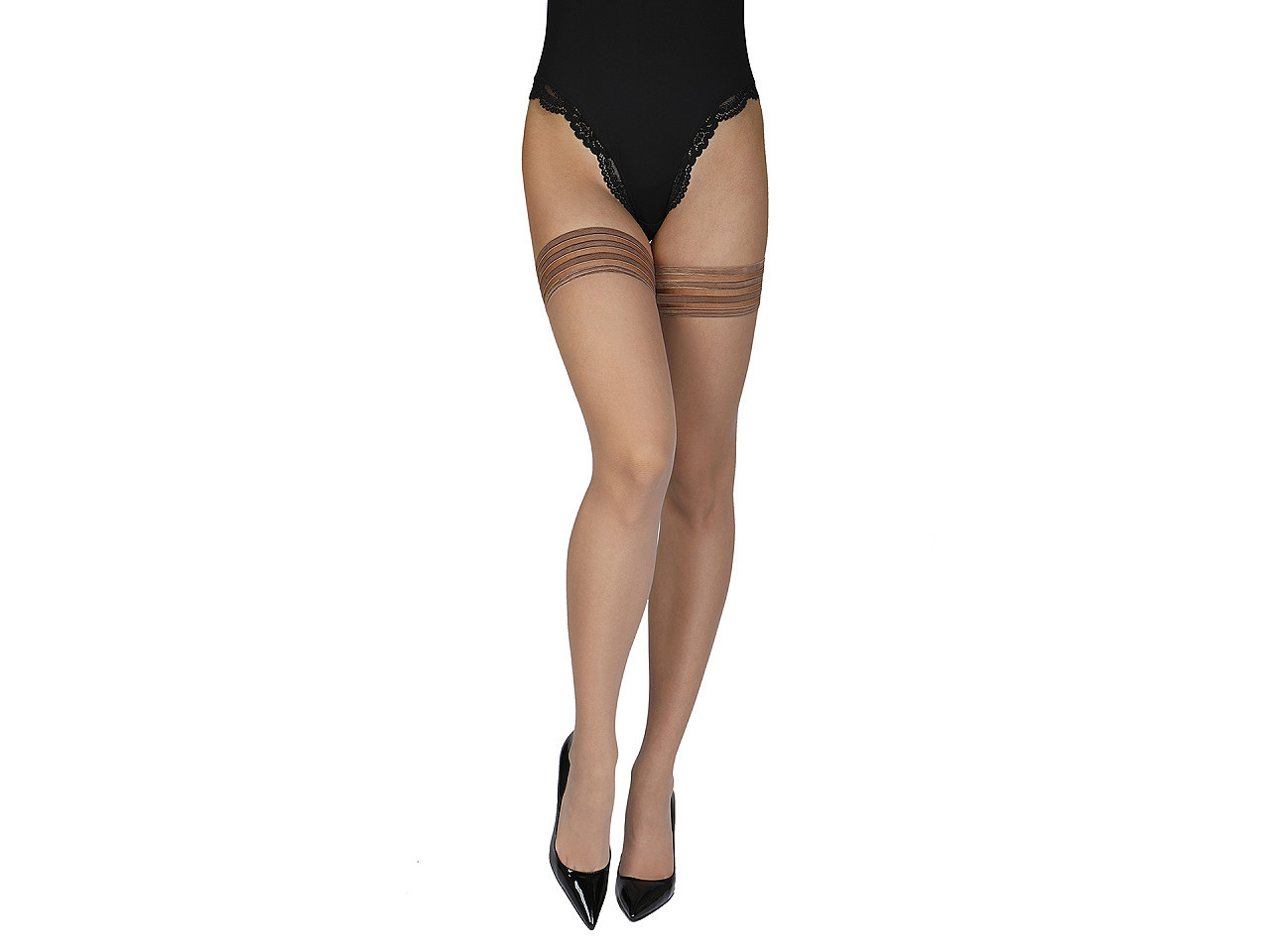 Dámské samodržící punčochy 15 den – elegance a pohodlí pro každou příležitost. Dopřejte svým nohám dokonalý vzhled s dámskými samodržícími punčochami o jemnosti 15 den. Tyto elegantní punčochy s matným povrchem opticky zjemní pokožku a dodají nohám přirozený, upravený vzhled. Horní část zdobí čtyři decentní pruhy, které působí stylově a zároveň diskrétně.