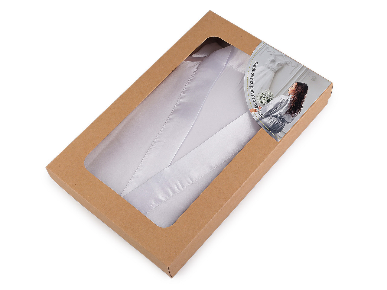 Tento elegantní župan využijete nejen při přípravách na svatbu, ale i doma – při relaxaci, ranní kávě nebo romantických chvílích. Součástí je stylová dárková krabice s průhledem, která z něj činí perfektní dárek pro nevěstu.
